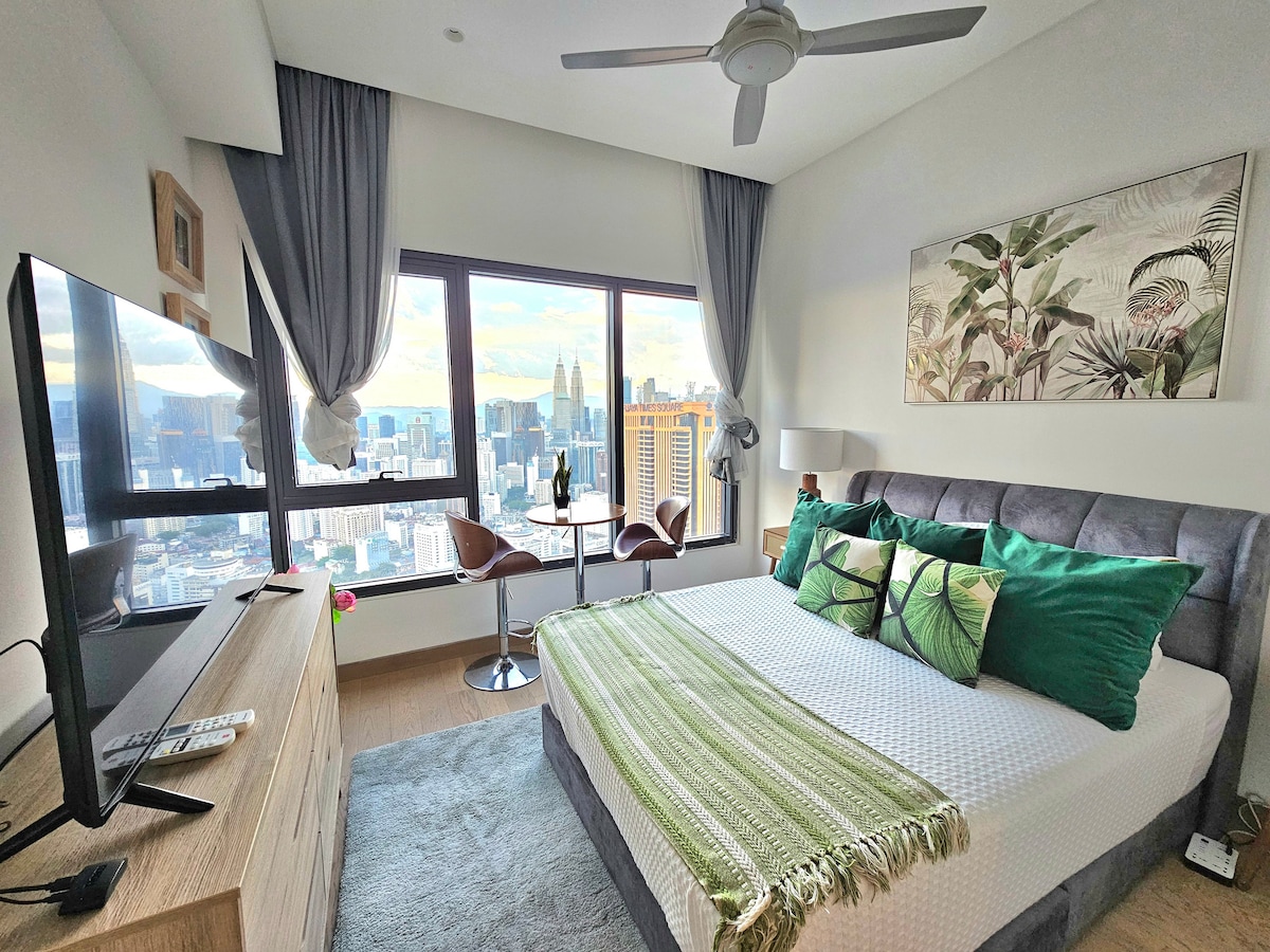 Velkommen til mitt eksklusive, men praktiske hjem i KLCC! Denne elegante leiligheten med to soverom og to bad har en fantastisk utsikt over de ikoniske Twin Towers fra hovedsoverommet og fra det avslappende badekaret på badet. Leiligheten er godt møblert med en romslig stue og et fullt utstyrt kjøkken. Du vil også være innenfor gangavstand til populære kjøpesentre (som Pavilion, KLCC osv.), restauranter, kafeer, og det beste er at Conlay MRT2-stasjonen ligger bare et steinkast unna.