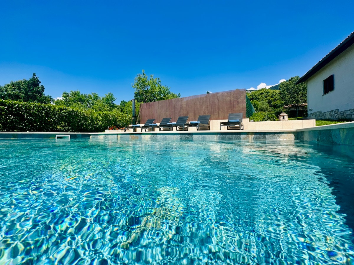 Oppdag paradiset på Sky Pool Villa i Medveja i Kroatia! Denne 2020-bygde luksusvillaen, som ligger midt i frodige grøntområder, kan skryte av et oppvarmet evighetsbasseng med fantastisk utsikt over Quarnaro-bukten. Unn deg badestamp, badstue og uteservering på den store terrassen og den private hagen. På innsiden kan du nyte et toppmoderne kjøkken, en koselig stue med en 70-tommers HDTV og to elegante soverom. Hvert øyeblikk her lover ro og uforglemmelige minner. Bestill nå for den ultimate ferien!