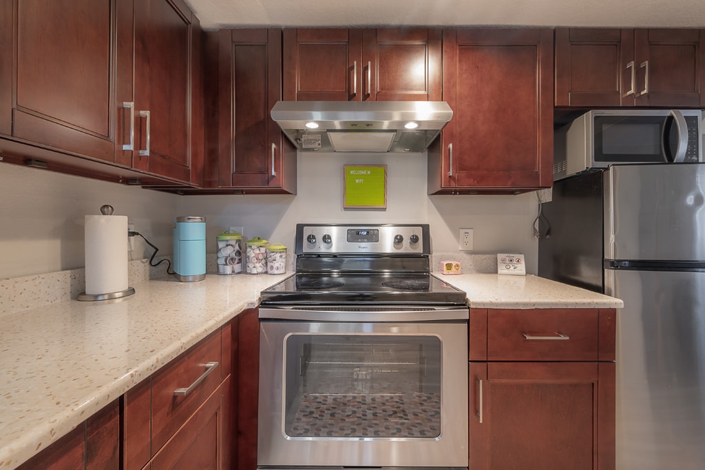Fullt møblerte utleiesteder har kjøkken og fasilitetene du trenger for å bo komfortabelt i en måned eller mer. Det er det perfekte alternativet til å leie et sted.