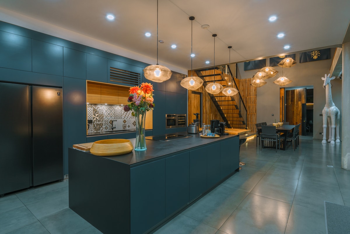 Oppdag en sjelden afro-tropisk villa med to soverom, to kingsize-suiter, et privat basseng, et stort tak og treningsutstyr, bare noen minutter fra Canggu sentrum. Amoke Villa er omtenksomt utformet for voksne som søker privatliv, velvære og et beroligende tilfluktssted, og blander yoruba-arven med moderne eleganse. Varme teksturer, naturlige materialer og rolig belysning skaper en raffinert atmosfære som er ideell for langsomme morgener, avslappende kvelder og et eksklusivt, minneverdig opphold i Canggu fylt med komfort og letthet.