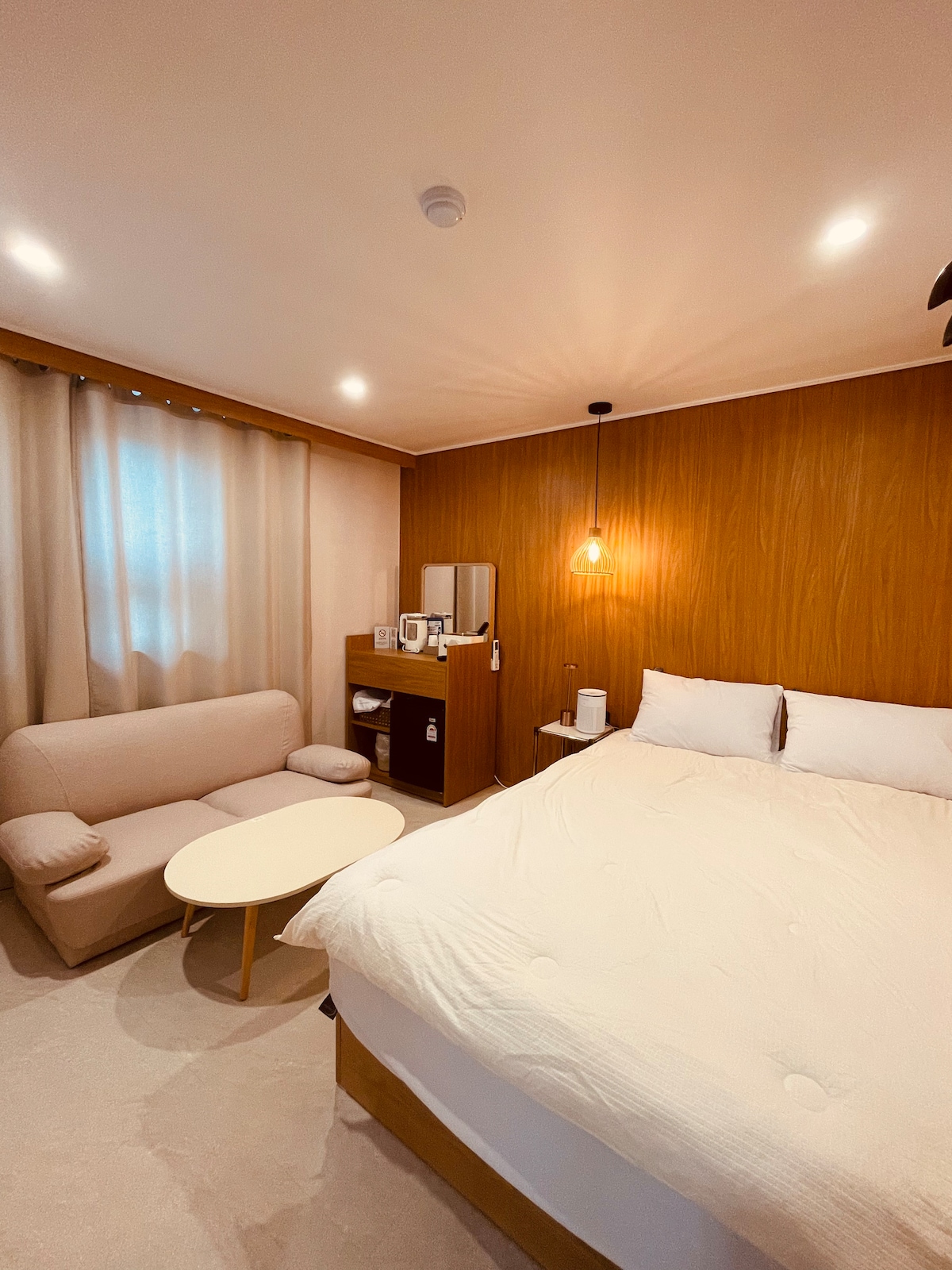 Et koselig overnattingssted i loftsstil med interiør i naturlig tre, som ligger 15 minutter fra Incheon lufthavn. Alle fire personene kan sove komfortabelt. – 2. etasje: dobbeltseng/queen-seng (2 personer) - 1. etasje: Tatamimatte og futon på gulvet (for to personer, sengetøy oppbevart i kommoden) ✔ Incheon lufthavn: 15 minutter med bil/taxi, 30 minutter med buss ✔ Gratis parkering (forhåndsregistrering av kjøretøyets registreringsnummer er påkrevd) ✔ Badstue foran bygningen (rabatt tilgjengelig for gjester) ✔ Nærbutikk i bygningen (1. etasje), restaurant (2. etasje), selvbetjeningsvaskeri med myntbetjening døgnet rundt (3. etasje) ✔ Matbutikker, restauranter, sykehus og banker i nærheten, innenfor gangavstand [Bruksanvisning] – Personlig OTT-konto er nødvendig. – Krydder er ikke inkludert; mikrobølgeovn og dekketøy er inkludert – Parkering: Kjøretøyets registreringsnummer må oppgis til verten på forhånd. – Søppel: Separat innsamlingsområde ved inngangen til parkeringsplassen på B1. – Røyking er ikke tillatt inne, heller ikke e-sigaretter. - Oppvarming er tilgjengelig ved hjelp av fjernkontrollen til klimaanlegget.