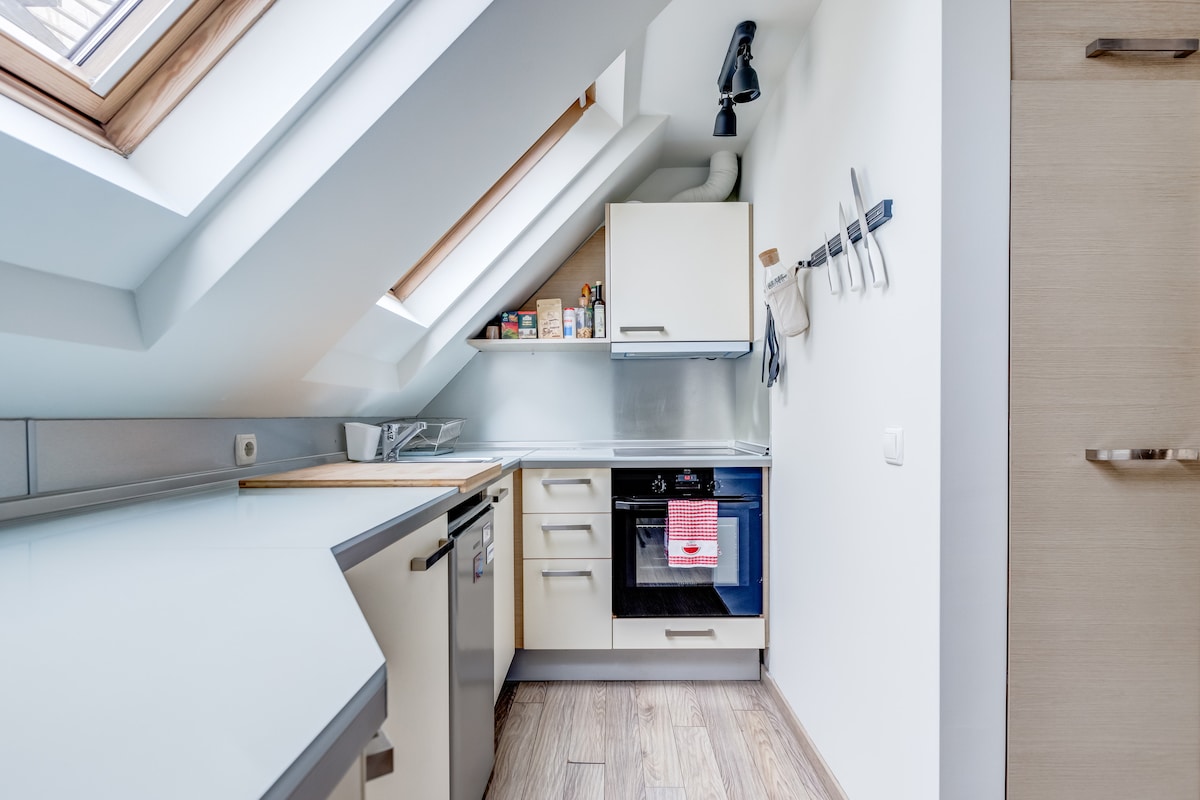 Welcome to my boutique attic studio at the foot of Vitosha. Bright, minimalist and peaceful space with beautiful mountain and city views. Located in a quiet, safe area—perfect for evening walks and relaxing away from the center. The bed features a Magniflex mattress and pillows for excellent rest. The studio has a fully equipped kitchen, fast Wi-Fi and a cozy work/dining area. Clean, calm and with easy access to both the mountain and the city.