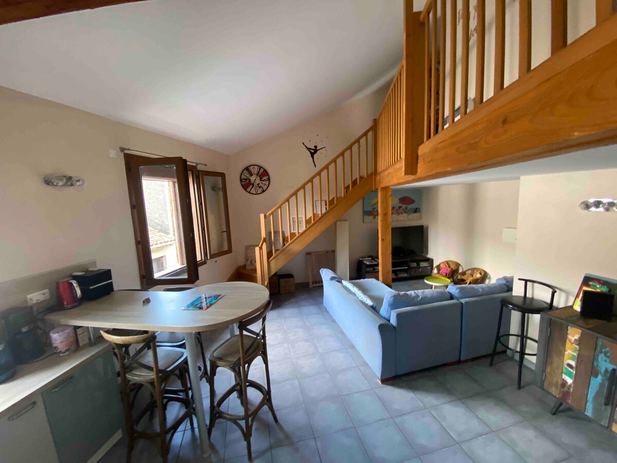 Bo i et renovert landsbyhus på to etasjer, som ligger i hjertet av det historiske sentrum i Serignan🏛️. Med takterrassen uten vis-à-vis, den private jacuzzien 🫧 og den private saunaen🧖, er den ideell for et romantisk opphold for to, så vel som for ferier for familier eller venner. 📍 Mindre enn ett minutts gange: Carrefour City🛒, bakeri🥖, tobakk, barer🍷, restauranter🍽️. Huset har en perfekt beliggenhet mellom strender 🏖️ og et livlig sentrum.