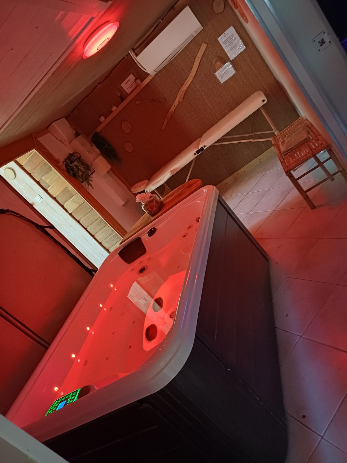 Du vil bo i en tømmerhytte med privat jacuzzi Prisen er for to personer med frokost den første morgenen (et tillegg på 15 € per person per natt vil bli belastet for 3. og 4. person) Våre dyrevenner er velkomne med et tillegg på 15 € for oppholdet. Du kan benytte deg av tilleggstjenester på ridesenteret som ligger hundre meter fra boligen, tjenester beskrevet i andre opplysninger.