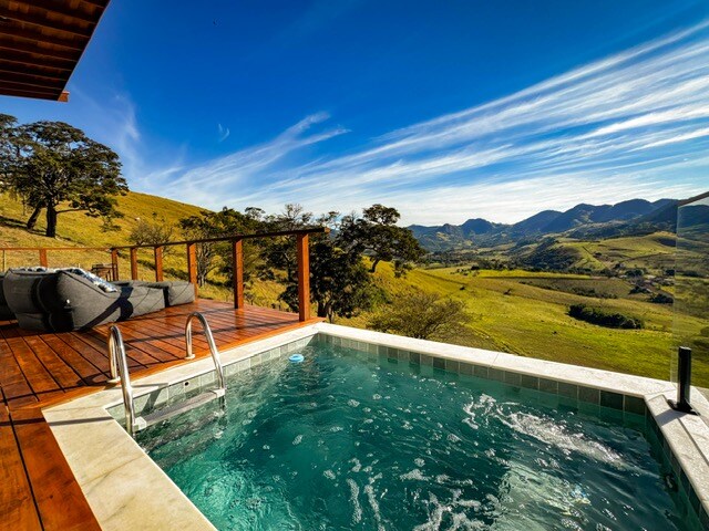 Privat plass høyt oppe i fjellene, med en fantastisk utsikt over Mantiqueira-fjellene. Huset ble spesialdesignet for par for å få en unik opplevelse midt i naturen. Beliggenheten vår forener naturens ro med nærheten til sentrinho. Vi ligger 8 km fra sentrum av São Francisco Xavier, på asfalt. På det høyeste punktet av en familieeid gård er differensialet vårt fordypningen i naturen, med eksklusivitet, privatliv og komfort.