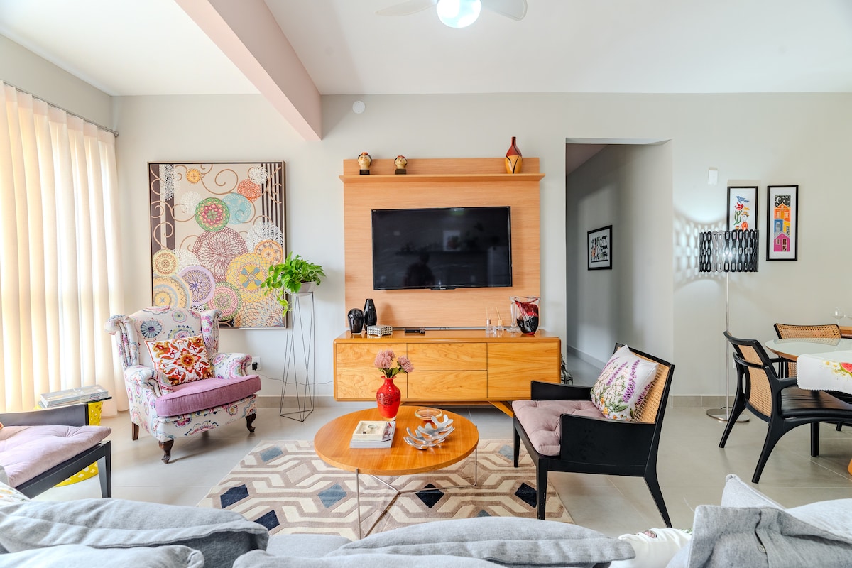 ⚠️VI BER OM AT HELE ANNONSEN LESES FØR DU BESTILLER. 🌄Soverom: queensize-seng og balkong, praktisk bad, stue og kjøkken, utstyrt for å imøtekomme dine behov med komfort. 🛜Internett for fritids- eller hjemmekontor. 🚘Én parkeringsplass avgrenset og tildekket for kjøretøyet ditt. Fritidsstruktur 🏊🏻♂️komplett med basseng 🚫Det tillater ikke kjæledyr. 🪜Det er ingen heis. Det er i andre etasje. 👕Strykejern i resepsjonen på selveierleiligheten. 🛌🏻 Enxoval: ekstra verdi.