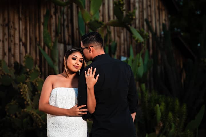 Denne forlovelses- eller parøkten inkluderer en hovedfotograf, en annen fotograf, flere steder, flere antrekk, et personlig nettgalleri og retusjerte bilder.