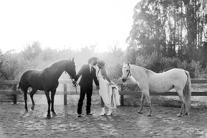 Denne pakken inkluderer en bryllupsfotografering som blander film, digitalt og Super 8. Denne økten inkluderer uformelle øyeblikk, redaksjonelle portretter og historiefortelling som føles uanstrengt og emosjonell.