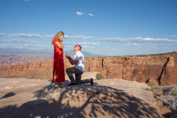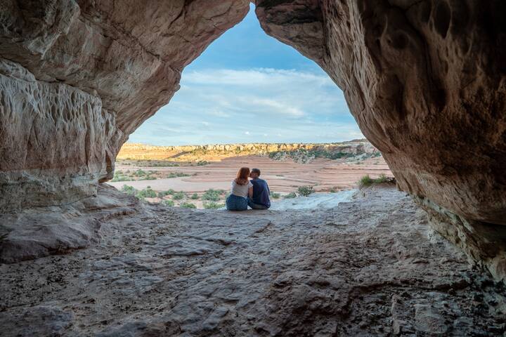 Dette er ikke en typisk fotografering – dette er en reise. Vi drar ut i et robust terrengkjøretøy og reiser dypt inn i Moabs ville skjønnhet til et fantastisk, avsidesliggende sted hvor røde steiner, ørkenlys og episk utsikt møtes for å skape ren magi.