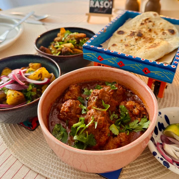 Nyt en autentisk vegetarisk femretters indisk lunsj eller middag i det vakre kokkestudioet mitt i Lisboa, tilberedt for deg eller gruppen din. Jeg tilbereder alt ferskt og presenterer hver rett én etter én, og veileder deg gjennom tradisjonelle smaker og krydder. Du kan forvente retter som kofta eller kyllingkarri, pakode, linsekebab, paratha eller naan, pulao, papadum og hjemmelagde chutneyer og sideretter. En personlig matopplevelse med virkelig unike, deilige smaker som ikke finnes på restauranter. Drikkevarer er inkludert.