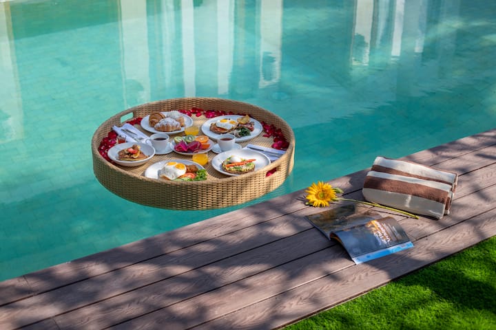 Start morgenen med en unik flytende frokost i villaen. Brettet er vakkert arrangert i bassenget, med nylagde retter, tropiske frukter, bakverk og ditt valg av kaffe eller te. Hvert brett er designet for to gjester, perfekt for en avslappende morgen sammen.