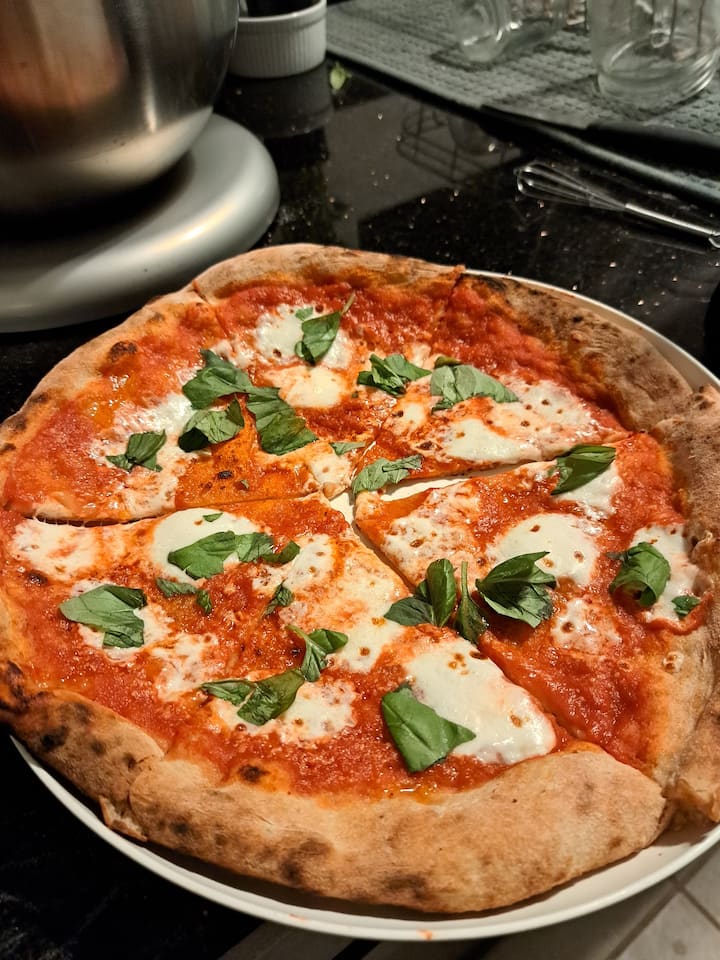 Napolitansk pizza, håndlaget, for gjestene våre som kommer til musikkfestivalene i den fantastiske ørkenen vår. Jeg tar med pizzaovnen min til deg og lager pizza tilpasset hver enkelt person. Margarita, pepperoni, pølse og cremini-sopp med gruyère, karamellisert pære med cambazola og valnøtter, eller bare ost. Alt mulig er et alternativ.