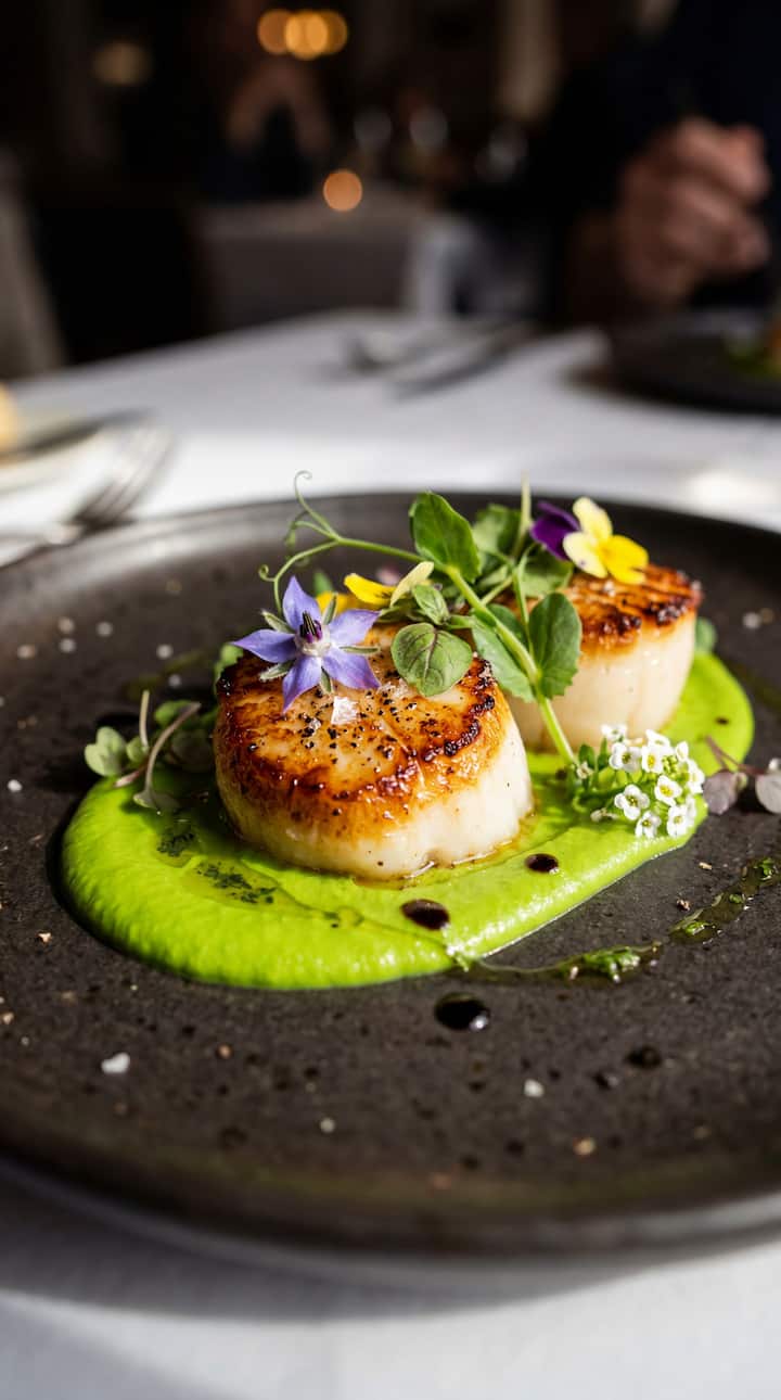 En deilig trerettersmeny med sesongbaserte ingredienser. Inkluderer forrett, hovedrett og dessert. Perfekt for en avslappet kveld.