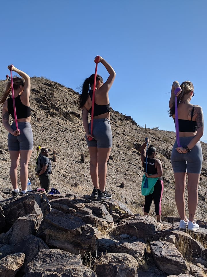 Deltakerne takler en rekke bakker for intens kondisjonstrening, etterfulgt av en motstandskrets med fantastisk utsikt over ørkenen. Økten avsluttes med nedkjøling og tøying.