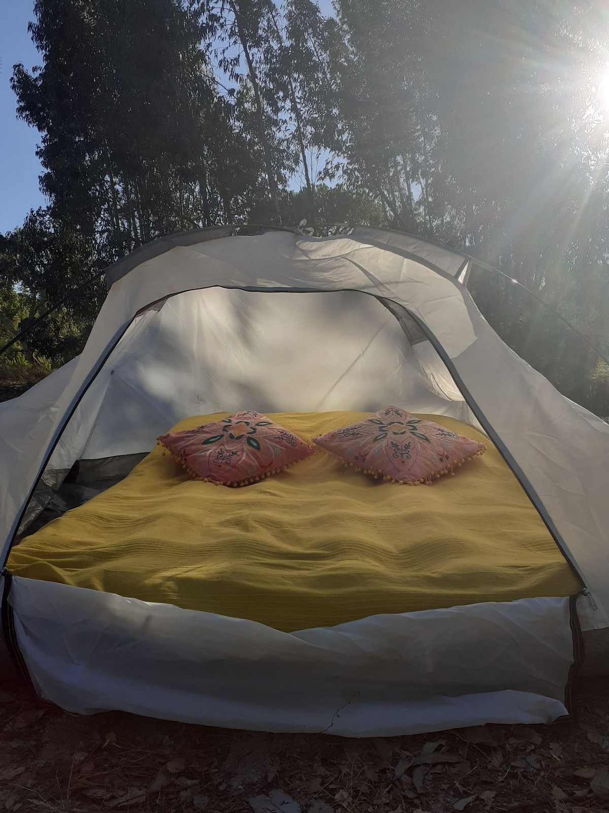 Kom og besøk det lille lokalsamfunnet vårt og selvforsynt gård, mens du bor i et stort telt laget av naturfibre, som ligger ved siden av yogakuppelen og den økologiske grønnsakshagen. Opplev camping med luksusen til en varm dusj og toaletter, inkludert tilgang til et fullt utstyrt kjøkken og en avslappende stue. (Vær oppmerksom på at dette er delte fasiliteter). Vi er innenfor gangavstand fra den historiske middelalderbyen Alcácer do Sal, og bare 20 minutter fra Portugals trendy strand.