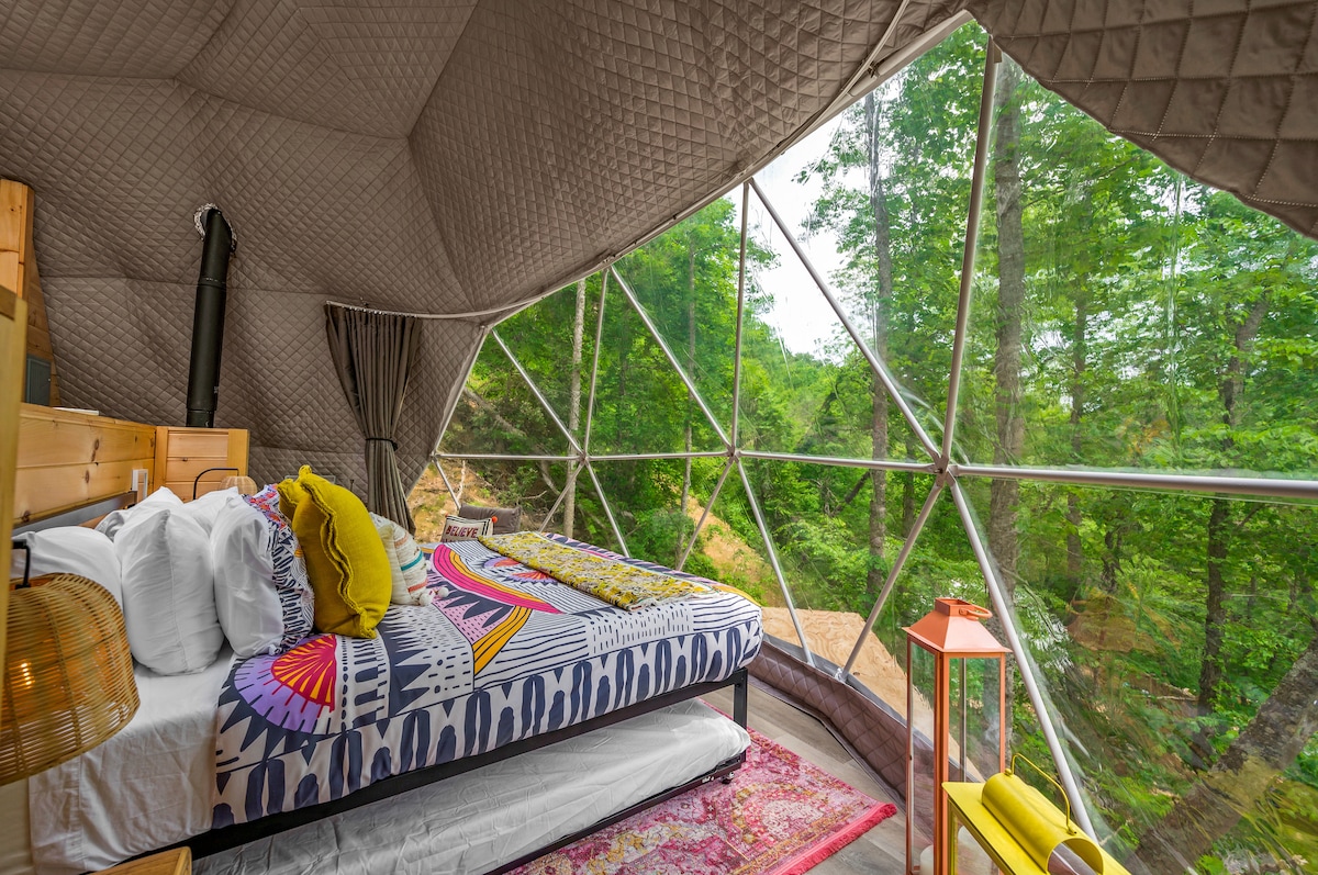 Gjør bryllupsreisen, familieturen eller arrangementet ditt spesielt.💜 Ligger bare 10 km unna Gatlinburg sentrum. 🏕️Dette er en glampingkuppel, det mest unike og luksuriøse konseptet med ferie som har vunnet populariteten i sosiale medier. 📽️ ⛰️Nær naturen, men veldig komfortabelt med alle fasilitetene inkludert: romslig innendørs bad, klimaanlegg, boblebad, bålplass, lysthus, grill og mer. 🤩 🧡Du vil elske opplevelsen, de fredelige morgenene og roen i fullmånenetter i fjellet⛰️