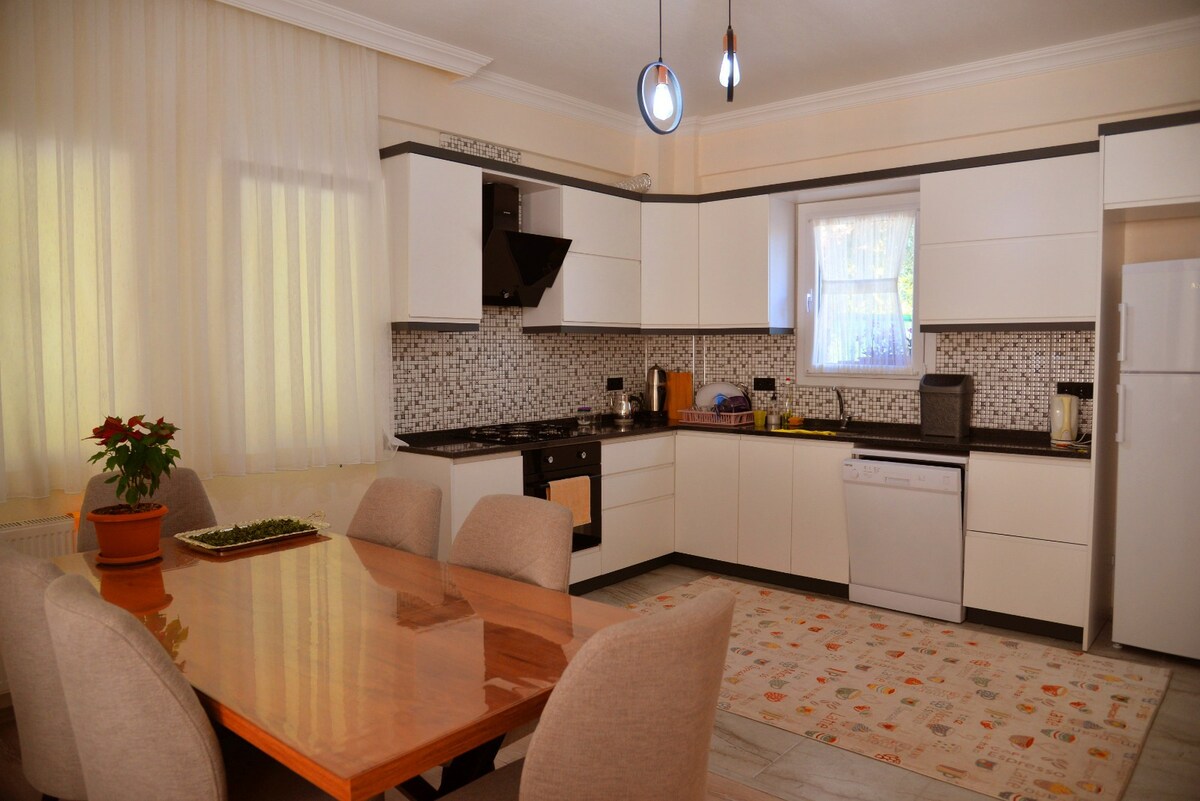 Du kan ha en fredelig ferie i villaen vår med basseng omgitt av grøntområder ved siden av skogen. Villaen vår i Fethiye Yeşilüzümlü er romslig og egnet for familier og spesielle gjester. Den består av tre rom og en stue, og det er to dobbeltsenger, to enkeltsenger og to sovesofaer. Hage og grillfasiliteter er tilgjengelige. Villaen vår ligger 10 minutter unna Fethiye sentrum og en halvtime(med bil), 15 minutter unna Calis-stranden (med bil), 15 minutter unna Calis-stranden. Kjæledyr er velkomne.