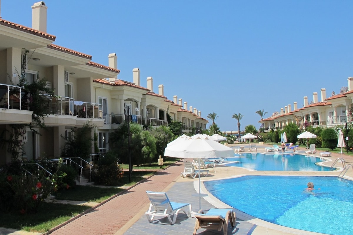 Med sin fantastiske beliggenhet ved havet og en privat strand er Sunset Beach Club det hyggeligste stedet i Fethiye, hvor det finnes sommerhus til leie. Sunset Beach Club ligger også bare 5–10 minutters gange fra sentrum av Çalış-stranden og strandpromenaden.
