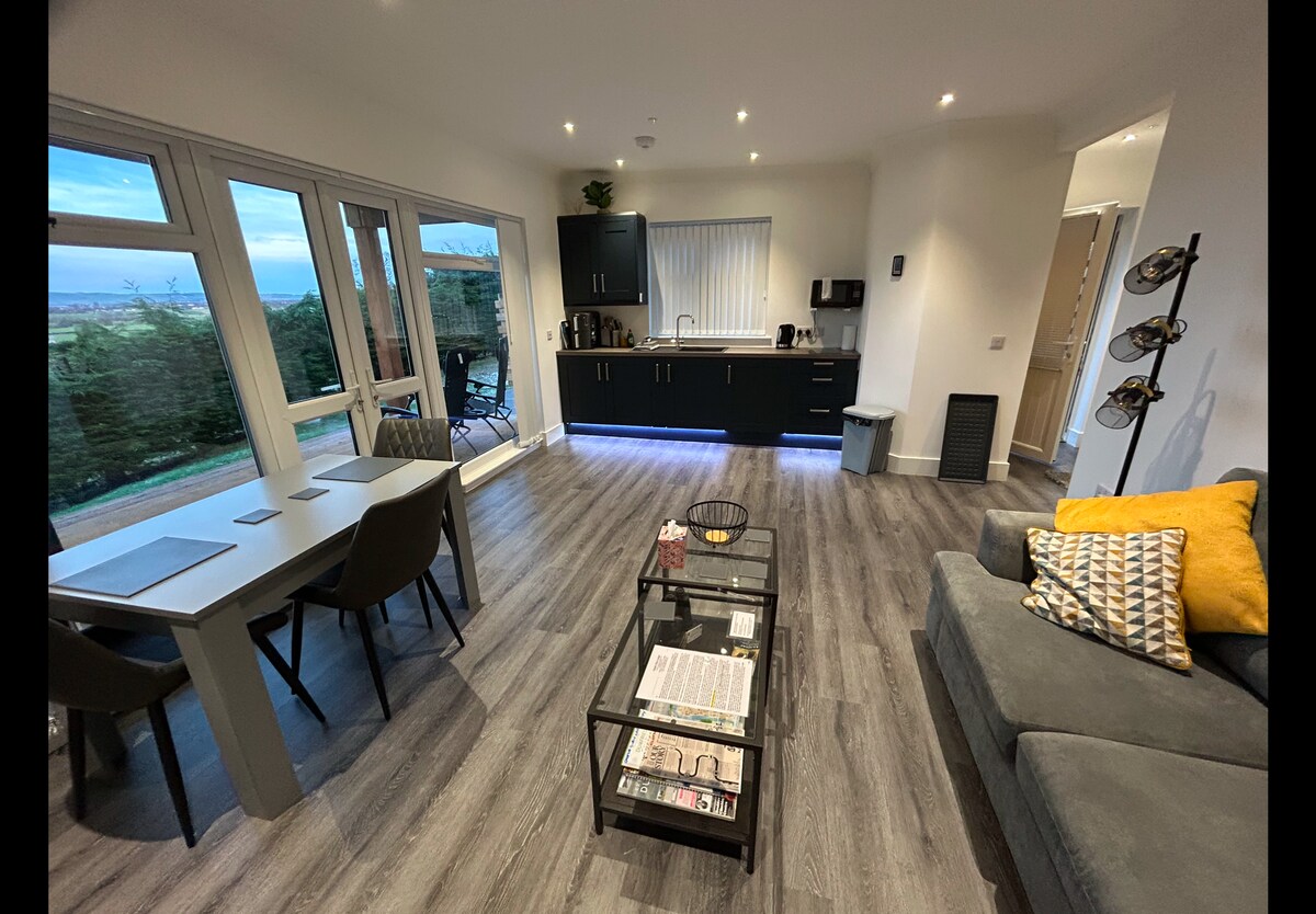 Woodend er en vakker hytte som ligger i et halvt landlig miljø, med fantastiske aspekter fra alle soverom og oppholdsrom. Stille og rolig hage og uteplass, perfekt for å nyte et glass boblende og nyte den fantastiske utsikten og slappe av. Den delvis frittstående hytta er stilig og smakfullt dekorert. En del av det fine med Woodend er at selv om du er omgitt av åkrer, er det bare en spasertur til Dumfries sentrum (20 minutter). Prisene er inkludert Airbnbs tjenestegebyr på 15 %.
