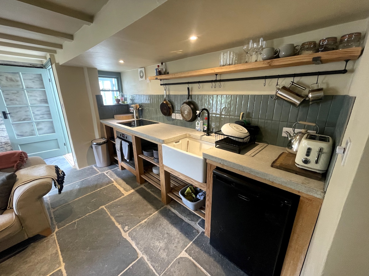Situated in Dartmoor national park with beautiful views from this detached, self-contained annex with private patio, garden, bike store and parking. The Dartmoor Den is a charming, newly converted annex that offers self catering accommodation in the quiet hamlet of Grenofen. Downstairs is open plan with a fully equipped new kitchen and cosy living/dining area, cloakroom/toilet and private garden. Upstairs there is a double bedroom with views across Dartmoor and an en-suite bathroom/wet room.