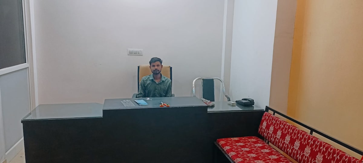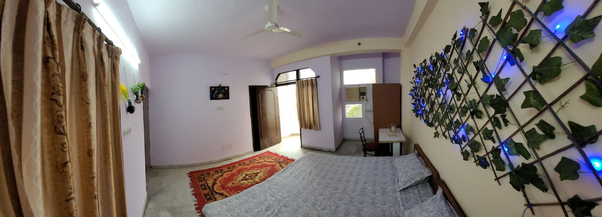 Bo på et komfortabelt studio med klimaanlegg i Reengus, ideelt for par og reisende som besøker Khatu Shyam Ji. Dette private studioet har en koselig seng, et tilstøtende bad med varmt vann, TV og et rent, rolig miljø. Beliggende i nærheten av Khatu Shyam Ji-templet og Reengus jernbanestasjon, med enkel tilgang og parkering. Perfekt for et budsjettvennlig, avslappende opphold med komfort, bekvemmelighet og privatliv.