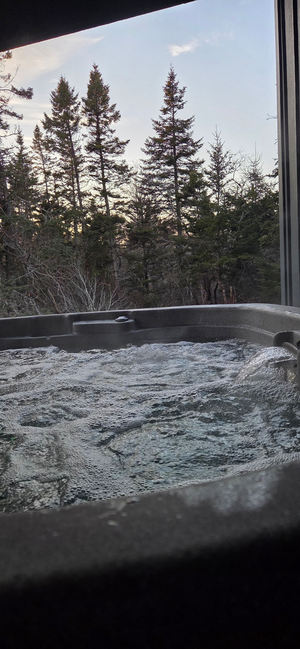 Vi ønsker å dele denne delen av paradiset vårt med deg, som ligger ved en fredelig, krystallklar innsjø. Hektar med land, en sandstrand skjult bak en velstelt eiendom strødd med vakre høye trær som forsvinner inn i den akadiske skogen. Inkluderer: privat boblebad og bålplass, delt badstue, kaldt bad, tilgang til innsjø, offentlig vedfyrt boblebad (flott for grupper når du bestiller en hytte), kano, kajakker, padlebrett, pedalbåt, sandstrand, flytematte og mer.