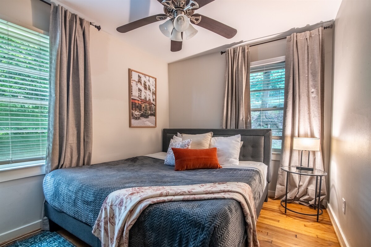 Nyt et rolig opphold i en elegant designet leilighet i Historic Forest Park, som går tilbake til 1925, med 9 fots takhøyde. Leiligheten er en to-roms enhet i nederste etasje. Gå gjennom en sjarmerende veranda og gå inn i spisestuen med et gipsbord og chinoiserie-veggmalerier. Kjøkkenet er komplett med moderne apparater og kaffe. Kingsize-madrassene er hybrider med Casper-puter og Supima-hotellark, og den opprinnelige baderomsflisen komplimenteres av et tilpasset nautisk veggmaleri.