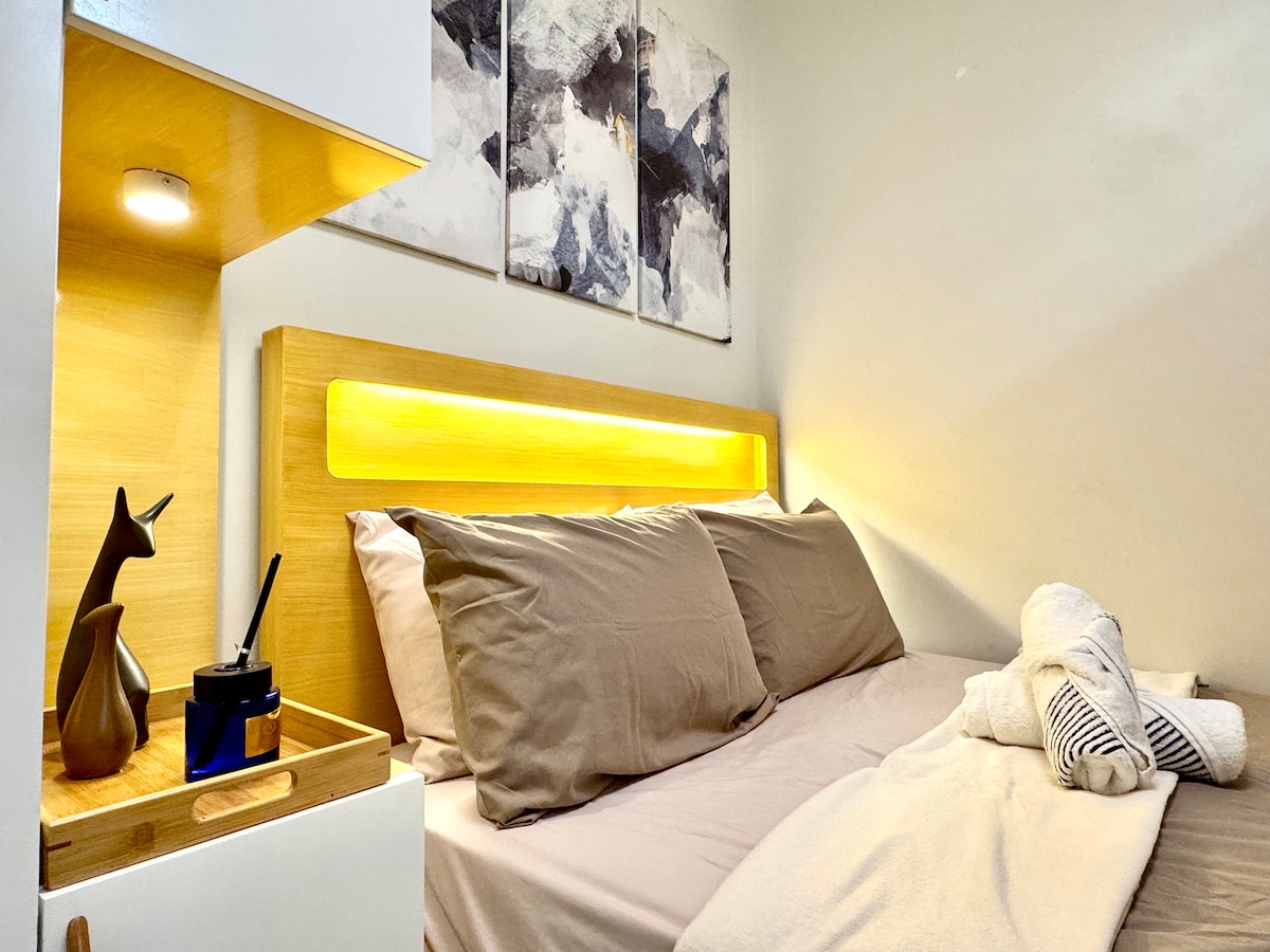 Our newly listed 1BR features a Nordic minimalist style for a calm, modern stay. Near MOA, NAIA, SMX, PICC, and World Trade Center, Casinos and Shopping. Features a queen bed, cloud-type sofa bed, dedicated workspace, amenity view balcony with outdoor furniture. Plus, it's remote work-friendly. ✔ Pool View ✔ 2 Beds ✔ QLED Smart TV ✔ Fast Wi-Fi ✔ WFH-friendly ✔ Balcony ✔ Washer included ✔ 24/7 security ✔ Keyless entry *Only 4 Maximum number of guests are allowed including infant and children*