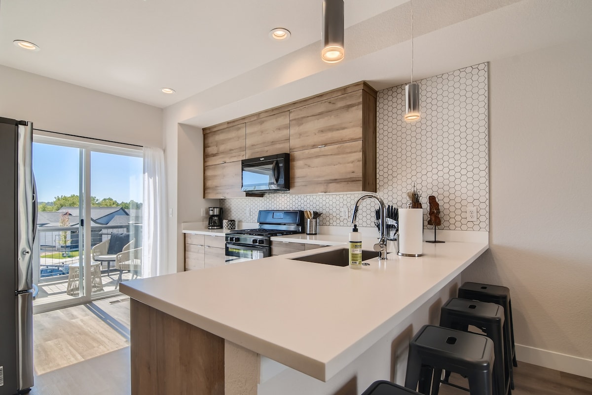 Sentralt og tilgjengelig med utsikt over Rocky Mountain. Slapp av og lad opp i det private boblebadet og bakgården. Nyt et nybygd hjem med enkle, luksuriøse møbler og sengetøy. Godt utstyrt kjøkken og stor bakgård. Internett med høy hastighet opptil 800 MBps, smart-TV og en dedikert arbeidsplass. Fire store motorveier (I-25, I-270, I-76, US-36) innenfor en 5 minutters kjøretur. 10 minutter til RiNo, 15 minutter til sentrum og 20 minutter til flyplassen. To kvartaler til togstasjonen Commerce City & 72nd Ave.