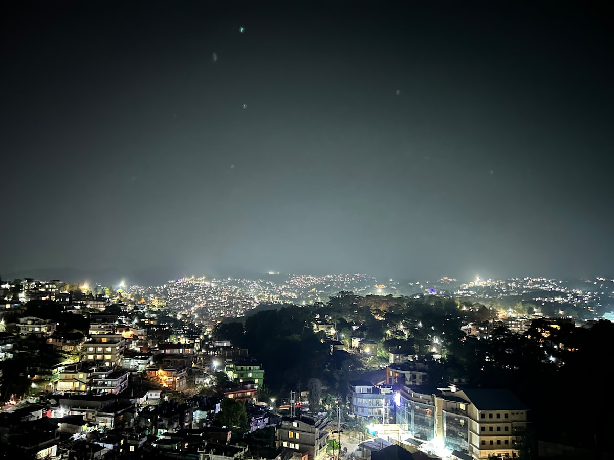 Hele gruppen vil være komfortabel på dette romslige og unike stedet. Vi ønsker familier velkommen til vår paranormiske utsikt over byen, skogen og himalayaene fra eiendommen. Frodig grønn skog for fotturer og en takrestaurant.