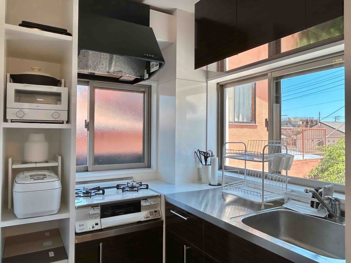 Et lite hus i gangavstand fra alle strendene i Yusa.(Iritahama er nærmeste strand, syv minutters gange/11 meter over havet) Spesielt anbefalt for folk som liker havet, som surfing og svømming! Eiendommen er fullt utstyrt med trådløst nettverk og en smart-TV, så den er ideell for langvarige opphold eller som base for en arbeidsferie eller en tur til Izu. Kjøkkenet er utstyrt med en komfyr med to plater (gass), kokekar, servise og enkle krydder. Vi har også en rekke gratis utleieartikler tilgjengelig for gjestene.Sykler, sparkesykler osv. er tilgjengelige gratis, så du er velkommen til å bruke dem til spaserturer under oppholdet. Hvis du ønsker å bruke grillen, kan du sjekke husreglene for mer informasjon. Røyking er heller ikke tillatt i anlegget, så røyk ute. Undersøk husreglene for røykeområder. Tilgangen ligger tre minutters gange fra bussholdeplassen Iritada, som ligger ti minutters bussreise fra Izukyu Shimoda stasjon, og ca. fem minutter med bil fra Izukyu Shimoda stasjon. Det er også gratis parkering på stedet, så du er velkommen til å komme med bil! * Vær oppmerksom på at badet er en utendørs dusj.