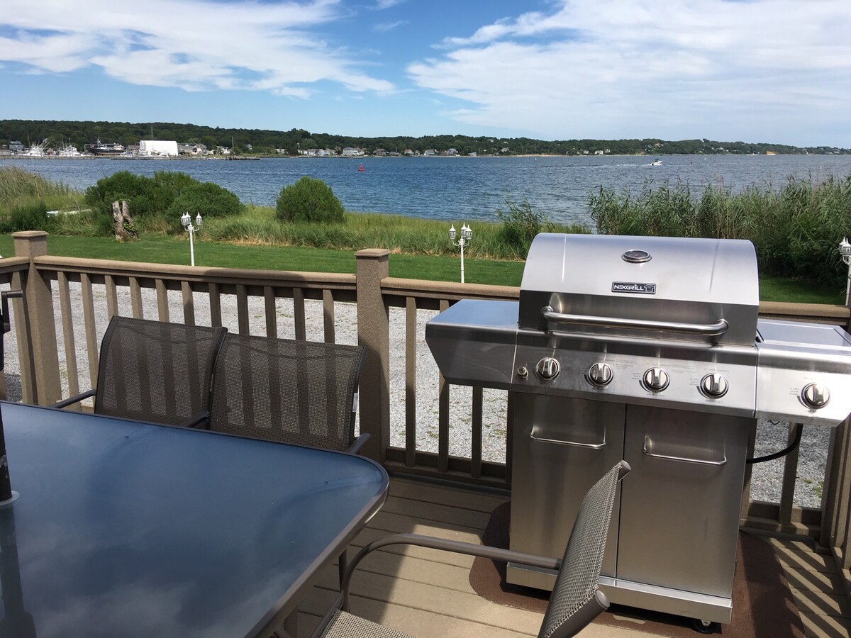 Fantastisk feriehjem ved stranden som ligger direkte på en privat sandstrand på Shinnecock Bay. Fantastisk utsikt over vannet – soloppganger/solnedganger. Grill og slapp av på terrassen på baksiden og se båtene passere, eller ta en rask spasertur eller skyttelbåt til noen av Hamptons beste restauranter. Ingen bekymringer om å ta en drink og komme deg hjem. Du vil elske stedet mitt på grunn av beliggenheten og stemningen. Stedet mitt passer for par, solo-eventyrere, forretningsreisende og familier (med barn).