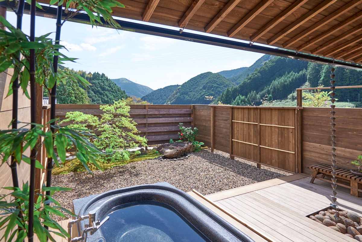Located between Tokyo and Kyoto, just 35 minutes from Shizuoka Station. A 100-year-old home set on a hilltop, surrounded by mountains and tea fields. Enjoy beautiful views and the calming sounds of nature. Relax in your private granite open-air bath with hot water, under the stars. A stay in the Japanese countryside offers a different side of Japan— one not often found in typical tourist destinations. Most guests arrive by car or taxi, but pickup from the nearest bus stop is also available.