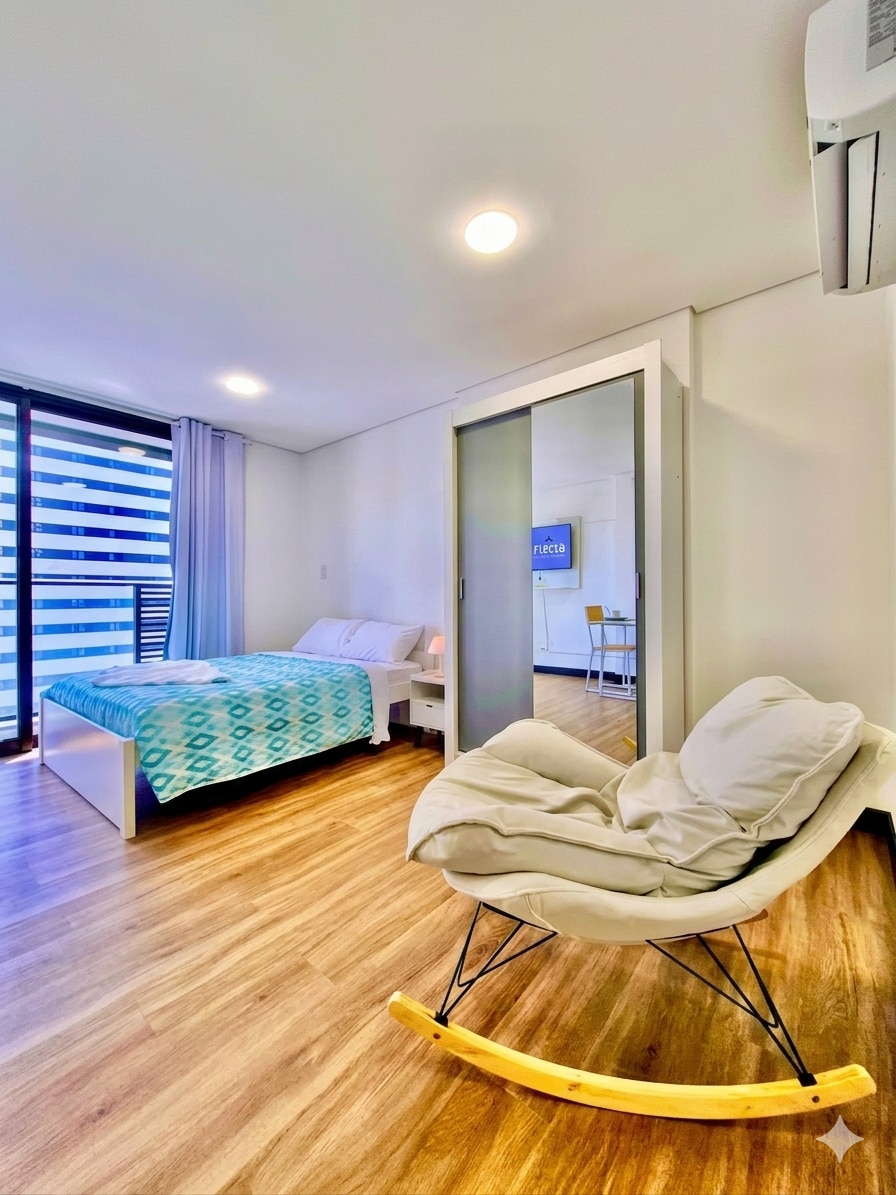 Hyggelig, romslig og sofistikert studioleilighet i Batel, den mest eksklusive regionen i Curitiba. I nærheten av kjøpesenteret Pátio Batel, markeder og de beste barene og restaurantene i byen. Batel kjøpesenter ligger noen få meter fra leiligheten og har flere designerbutikker, Cinépolis kino og et stort mathjørne. Batel er et kosmopolitisk, sjarmerende nabolag og har alt du trenger, i tillegg til vakre torg, som Japan og Spania.