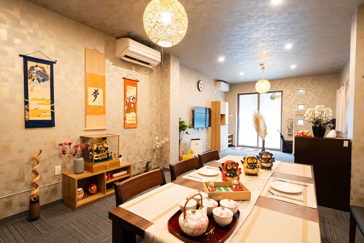 日本家屋をリノベーションした、一軒家まるまる貸切の宿泊施設です。 ファミリーやグループの長期滞在を快適にすごして頂けるように設備に配慮しました。 ■ロケーション 地下鉄高岳駅より徒歩2分、静かな住宅街にあります。 泉は一番人気のエリアで、名古屋駅や栄にも近く付近にはお洒落な飲食店が多数あります。 ■冷暖房 「冷暖房エアコンとガスファンヒータ」を全室に装備しています。 ■トイレ 男女別でウオシュレット付きお手洗があります ■最新家電 【ドラム式洗濯機】【ウォーターレンジ】【IHクッキングヒーター】など高級家電で料理や洗濯も快適にすごせます。 ■「NET」 光インターネットを利用した快適な有線LANとWifiが利用できます。 デジタルTVはYouTubeやNetflixなどが楽しめます。
