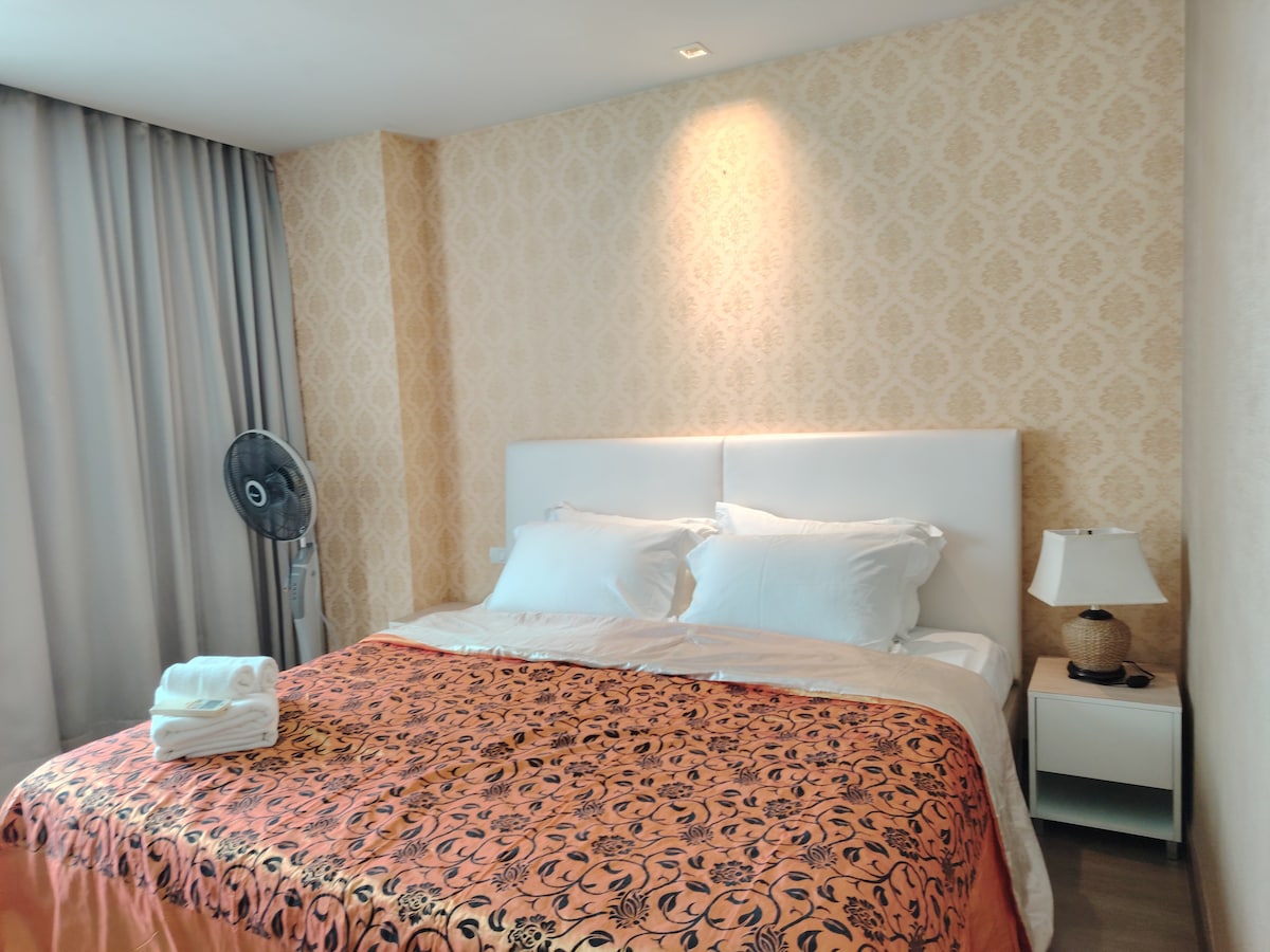 Markedsenter ett soverom B1D/nær T-banen/utsikt over byen fra høyde/Siam forretningsområde/gratis transport til stasjonen/utendørsbasseng/treningsstudio/bar på taket/fire netter med transport til og fra flyplassen