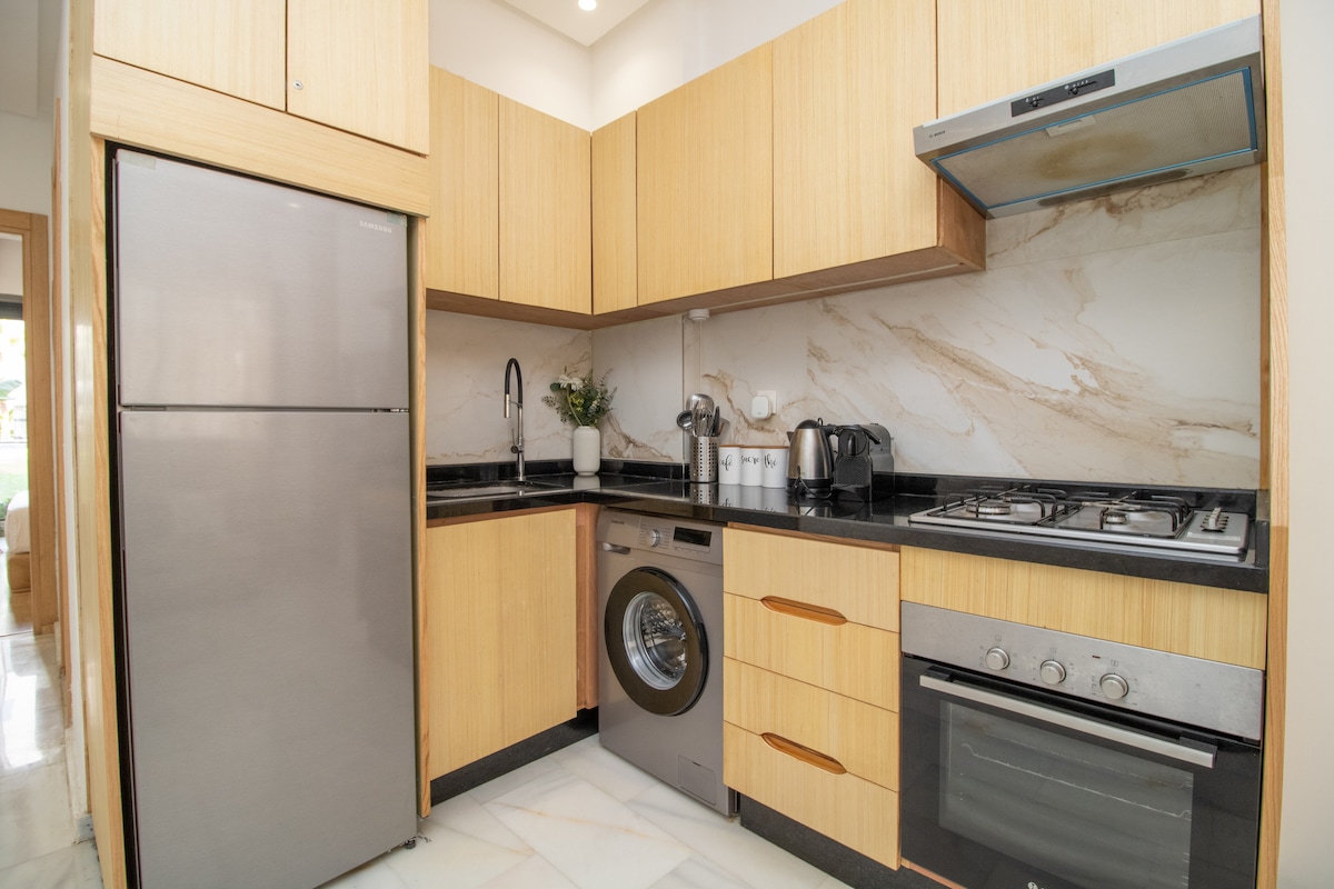 ✨ Elegant feriested i hjertet av Casablanca, rett overfor togstasjonen Casa Port. Denne lyse og romslige leiligheten på 83 kvm tilbyr all komforten du trenger for et perfekt opphold, og har plass til opptil fem gjester. Den har to fredelige soverom med utsikt over hagen, en stue i hjemmekino-stil (75" TV), en balkong med utsikt over Hassan II-moskeen, et fullt utstyrt kjøkken og et eget arbeidsområde. Perfekt for avslappende øyeblikk, enten det er for en helg eller et lengre opphold 🌇🌿