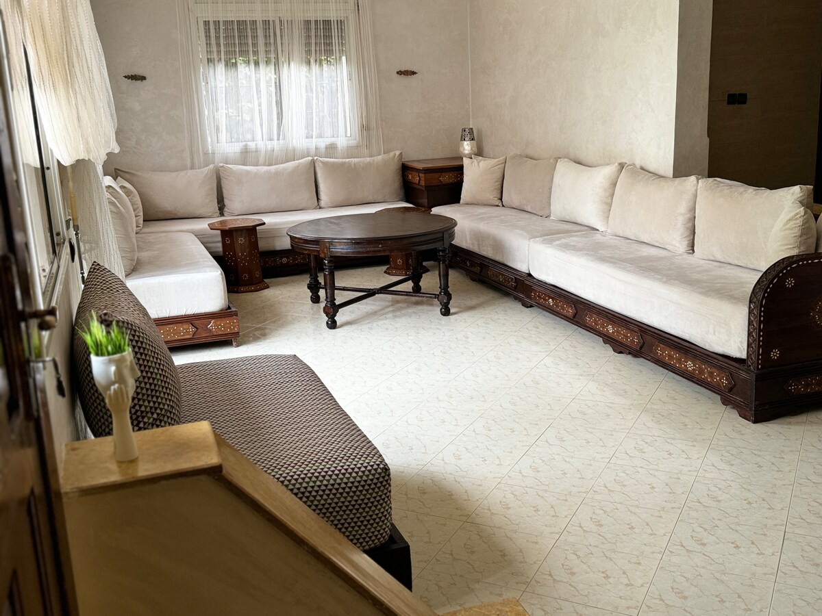 Velkommen til den moderne, koselige leiligheten vår hvor komfort møter stil. Nyt en lys stue med marineblå sofaer, et elegant kjøkken og et spiseområde for seks personer. Stedet har raskt trådløst nettverk, en flatskjerm-TV (Bein sports, IPTV-tjeneste) og elegant innredning. Store vinduer fyller den med naturlig lys og rolig energi. Bare tre minutter til togstasjonen, to minutter til Carrefour og fem minutter med bil til stranden og sentrum … (ikke tillatt for ugifte par) Perfekt for avslappende korte eller lange opphold.