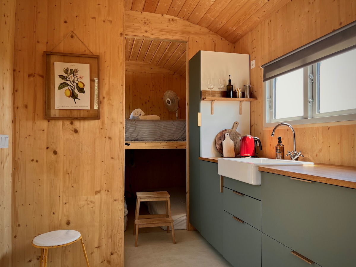 Slå av telefonen og nyt dette spesielle stedet midt i portugisisk natur ved foten av Gardunhas. På gården vår under oppføring har vi dette vakre minihuset til leie ved siden av huset vårt og bak nattkvarteret til de tre sauene våre (Emma, Lilly og Arya). Vi bygget denne moderne versjonen selv, basert på en typisk engelsk gjeterhytte. Først for oss selv, og nå for deg. Kom, slapp av, nyt og les en bok.