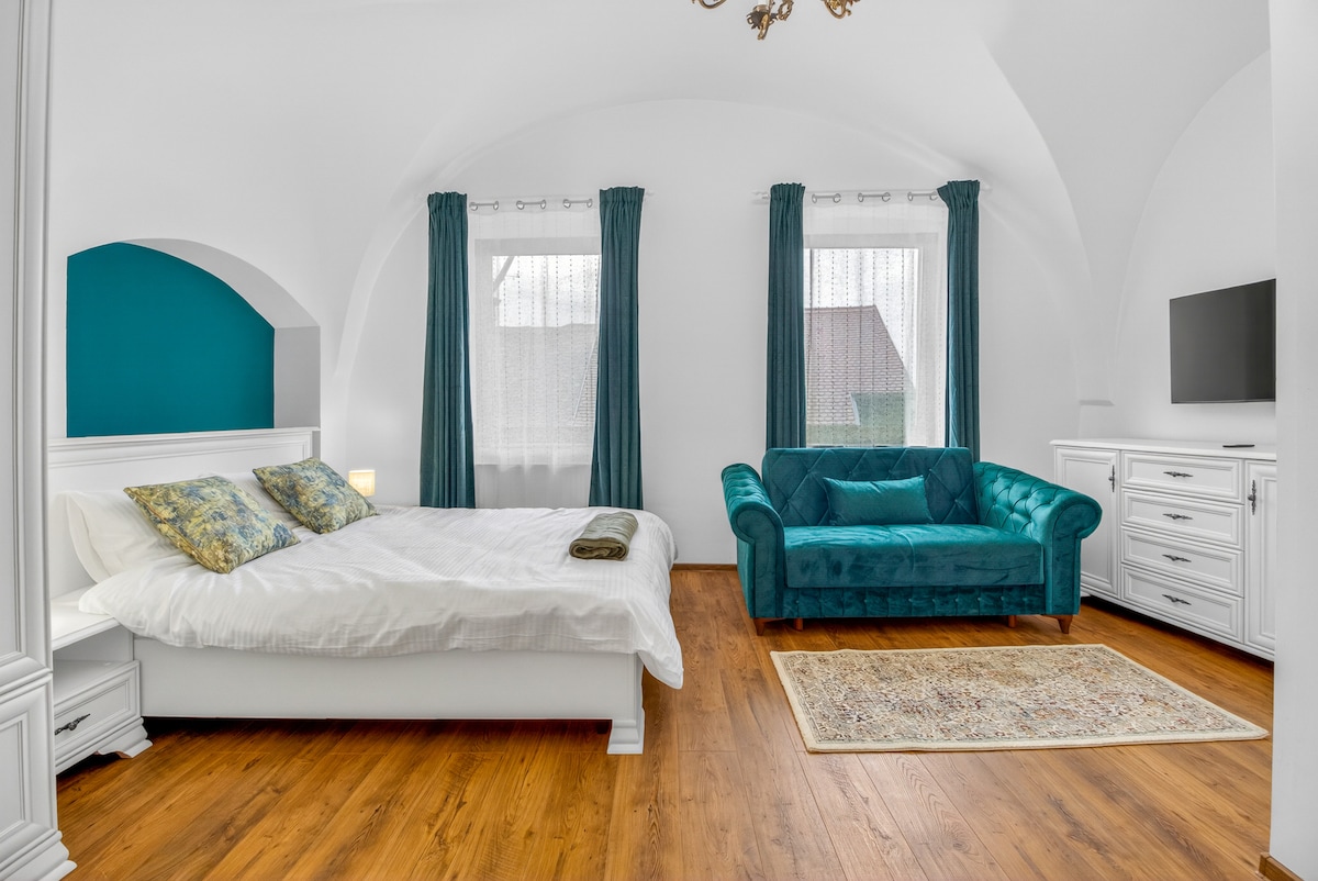 Dette er en nylig restaurert historisk eiendom i hjertet av UNESCO-kvartalet Sighişoara. Leiligheten er veldig romslig (110 kvm) og vakkert dekorert. Kjøkkenet er helt nytt (stekeovn, platetopp, mikrobølgeovn, vannkoker, redskaper, servise, kjøleskap, fryser, vaskemaskin). Leiligheten har to store soverom – et hovedsoverom (kingsize-seng) og et soverom med to enkeltsenger. Soverommene er sammenkoblet og byr på majestetisk utsikt over byen. Stuen er veldig koselig.