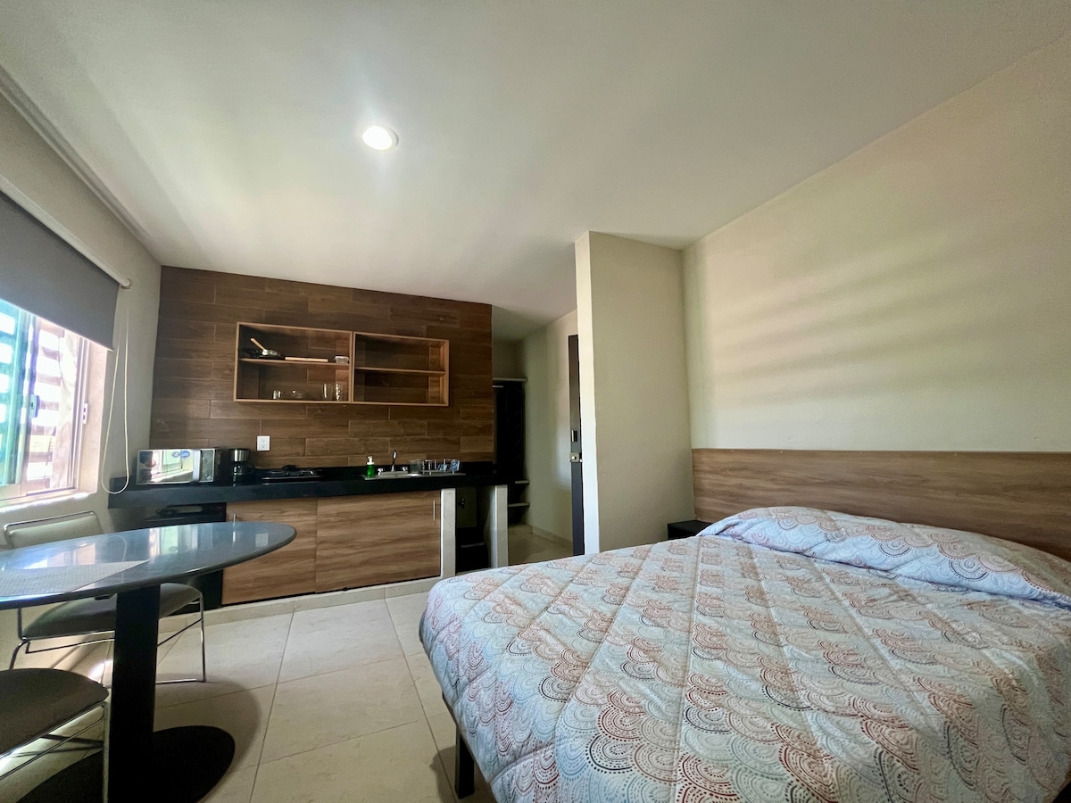 Vi tilbyr komfortable og funksjonelle leiligheter som er ideelle for deg. Egenskaper: – King size-seng. – 50 tommer TV. – Perfekt skrivebord for å jobbe eller studere. – Fullt utstyrt kjøkken. – Privat og rent bad. – Funksjonell parkering i første etasje. Inkluderte tjenester: – Vann, strøm og internett. Ideelt for korte eller lange opphold. Bestill nå og gjør dette stedet til ditt midlertidige hjem! Privilegert beliggenhet én gate fra det høyt spesialiserte regionale sykehuset.
