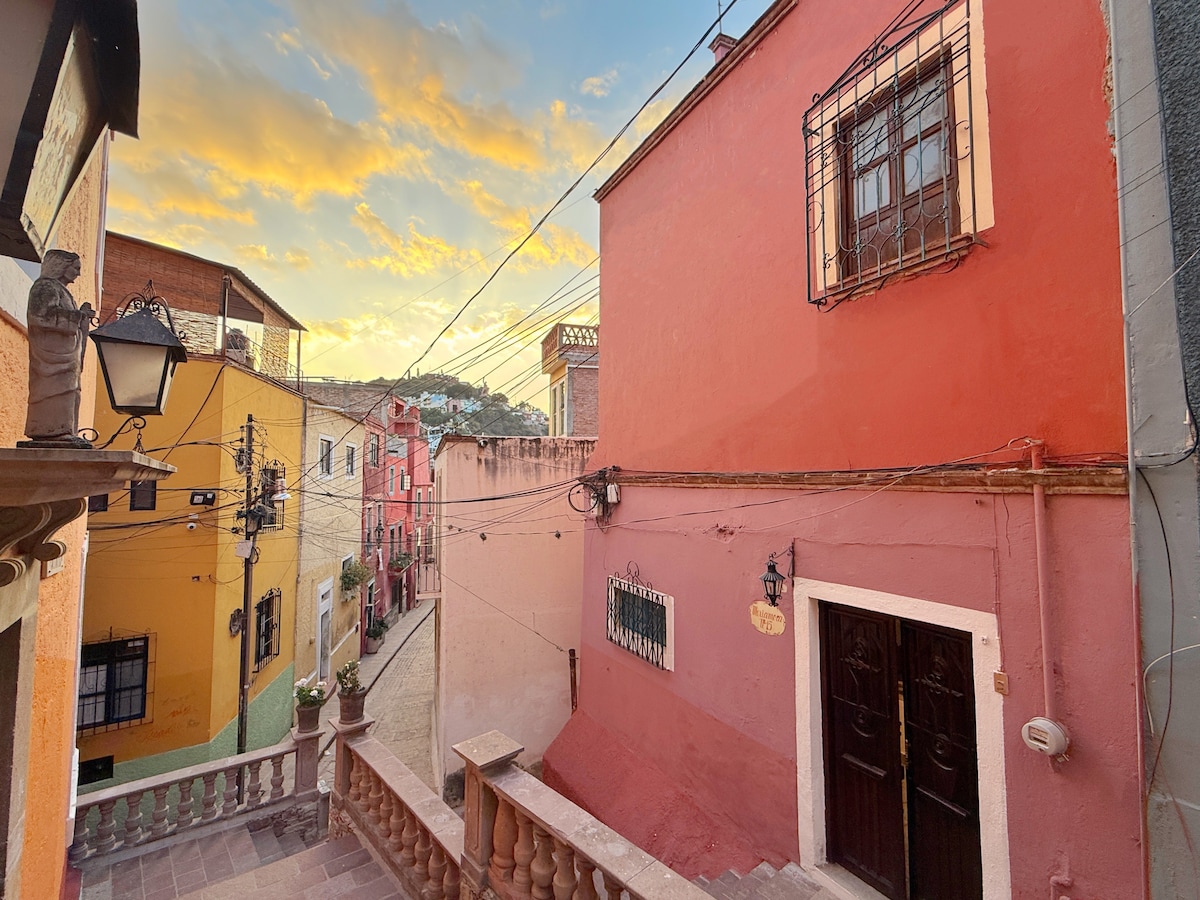 GUANAJUATO: kronen blant spanske kolonibyer i Mexicos høyland! Byen ble grunnlagt på 1550-tallet, og den ser ut som byer i Spania eller Italia. Mildt klima 6600 fot over havet, utrolig kosmopolitisk. Årlig festival Cervantino i oktober med artister fra hele verden. I sentrum av Guanajuato, noen minutter fra Mercado Hidalgo, Alhondiga, Jardin Union, Teatro Juarez, fire kvartaler fra «Callejon del Beso» over Plaza de los Angeles, og tilgjengelig med bil i Zona Centro.