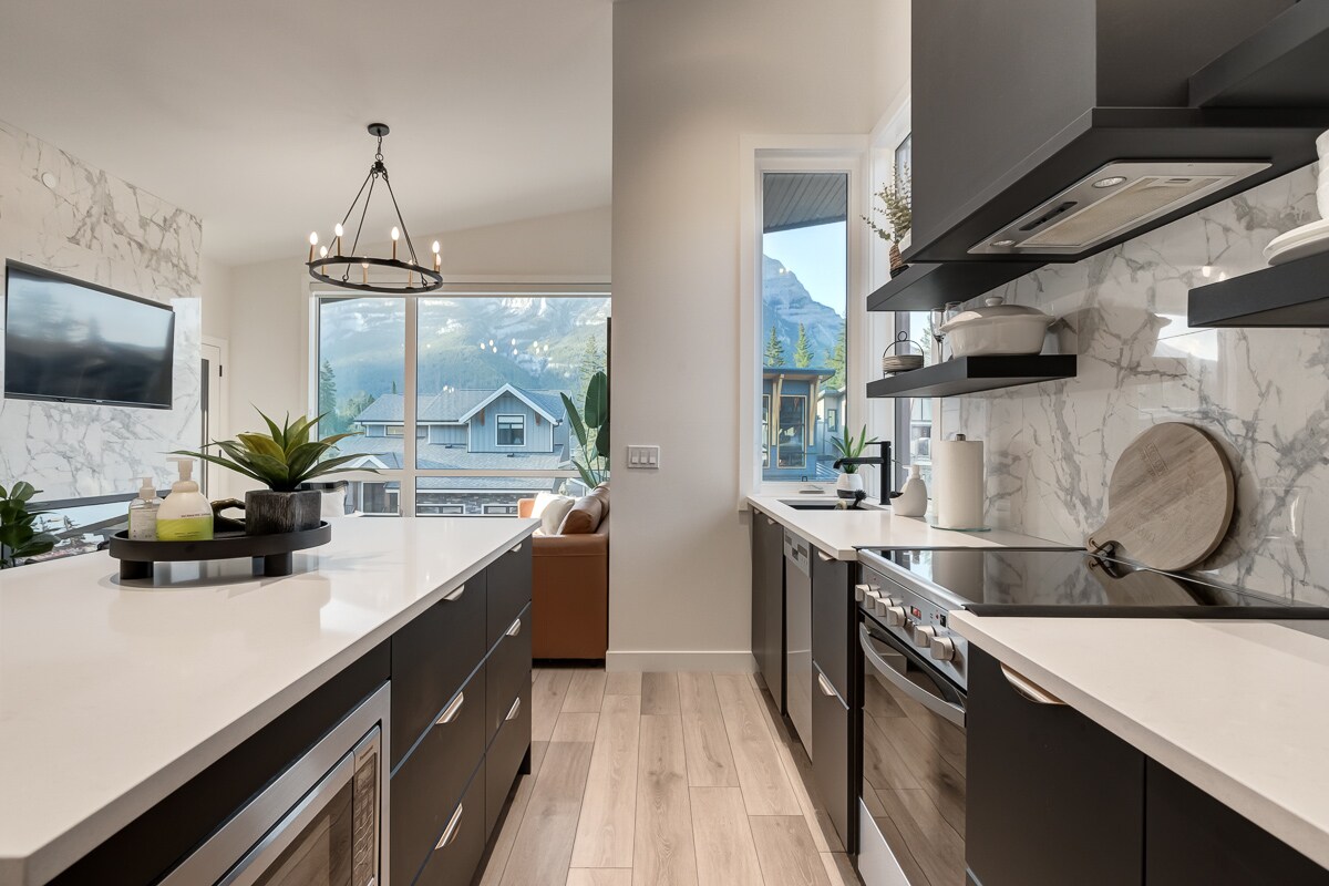 Velkommen til den luksuriøse toppleiligheten vår i hjertet av sentrum, hvor du kan nyte den perfekte blandingen av urbant raffinement og fantastisk naturlig skjønnhet. Føl deg som hjemme i denne suiten med to soverom og to bad, med en innbydende, varm atmosfære full av naturlig lys, og bli betatt av den fantastiske, episke utsikten over fjellene som strekker seg foran deg så snart du går inn i vårt stilfullt designede tilfluktssted! Opplev Canmore med oss!