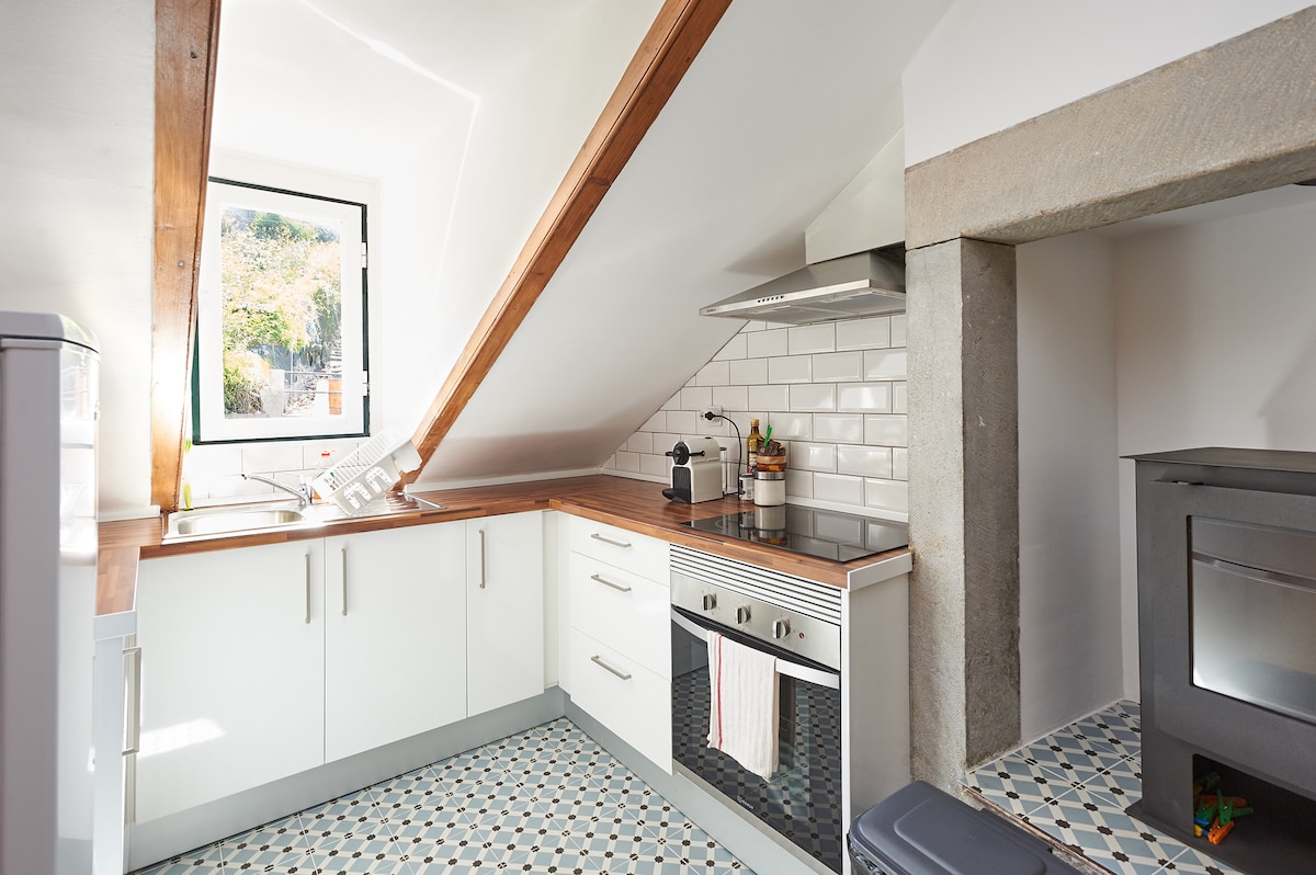 Denne hyggelige leiligheten er nylig restaurert i en tradisjonell Sintra Chalet fra 1800-tallet. Den ligger i øverste etasje av hytta med uforstyrret utsikt over Sintra. Det er midt i sentrum av Sintra med gratis gateparkering og en rekke restauranter, butikker og transportforbindelser med busser og tog innenfor maksimalt 2 minutters gangavstand. Hovedanlegget er tilgjengelig enten med transport innen 2 minutter eller Quinta da Regaleira er gangavstand (15 minutter).