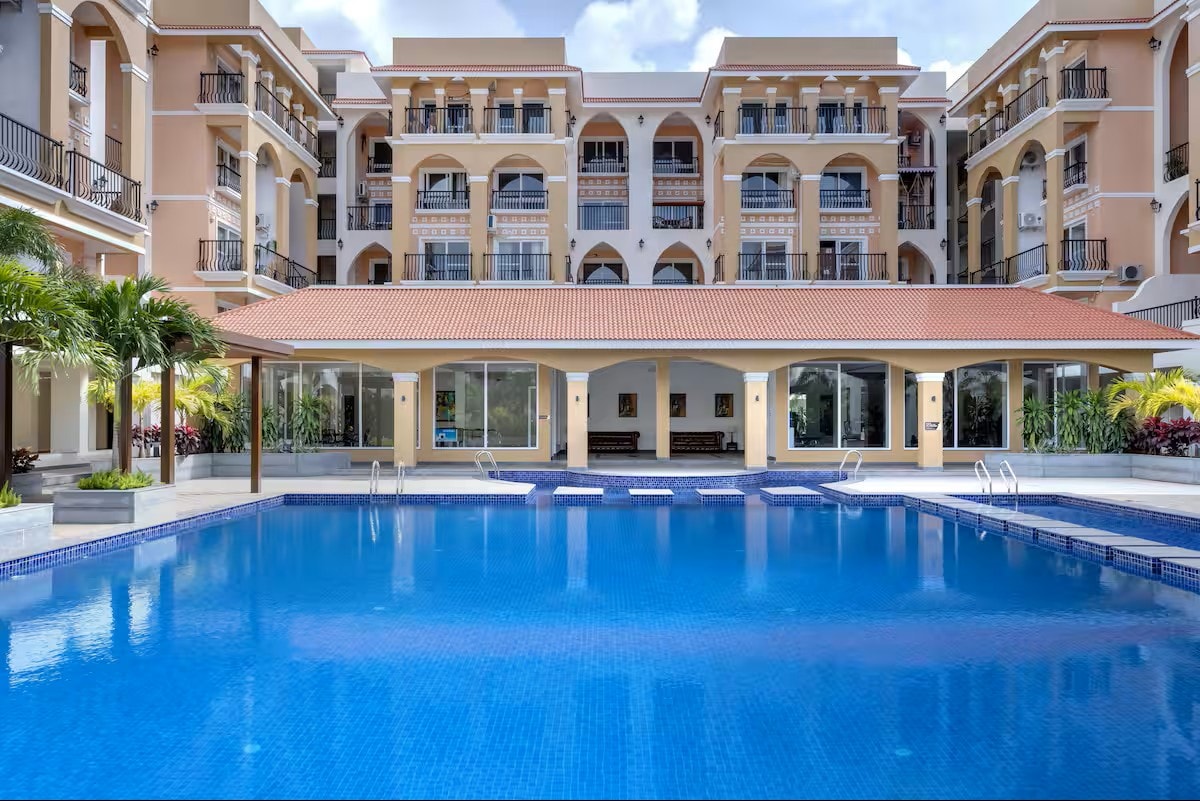 Unn deg en ferie i vår førsteklasses 1BHK luksusuriøs leilighet i Baga, North Goa – et fristed for par og små familier. Bare 1 km fra Baga Beach, i et fredelig, inngjerdet samfunn i hjertet av Baga. Nyt to store bassenger, en jacuzzi, damp, sauna, stort treningsrom, innendørs spill, yogaområde, overdekket parkering og fredelig grønn utsikt. Nyt utsikten mot bassenget med frodige rismarker som bakteppe. Opplev gjennomført designet luksus og fritid, bare 5 minutters spasertur fra ikoniske Titos Lane.