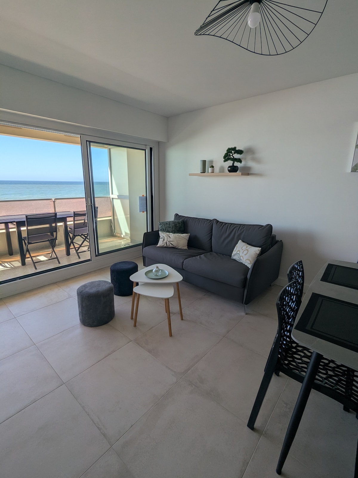 Mot sjøen: nyt et eksepsjonelt panorama. Fantastisk T2-leilighet (2/4 pers) renovert i 2024 – HØY KOMFORT. Stranden og sanddynen ligger rett utenfor leiligheten (ingen vei å krysse). Bemerkelsesverdig utsikt over havet og Île d'Yeu fra spiseområdet, loggiaen og til og med fra sengen på soverommet. Nyt solnedgangen sammen med din kjære, familie eller venner. Du har din egen lukkede garasje, ideell for bilen din og for å oppbevare sykler, tilhengere og strandleker.