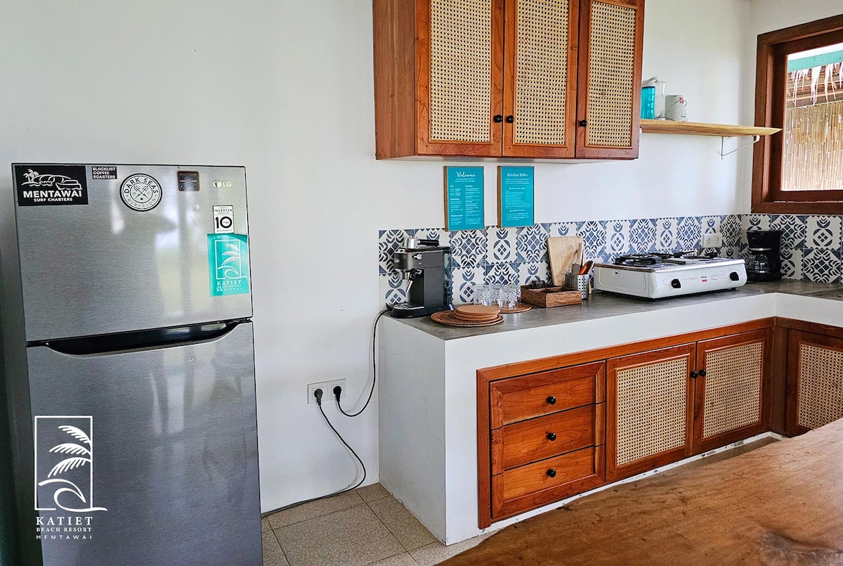 Exclusive beachfront studio on Sipora Island, Mentawai, directly in front of the iconic Telescopes wave. The only studio in the area, offering total privacy and a serene, almost private beach experience. Designed for comfort and style, it features a king-size bed, AC, Starlink internet, refrigerator, coffee machine, hot water, and a dining table for two. Meals, a motorbike, and round-trip harbor transfer are included. Enjoy breathtaking sunsets from your private oceanfront balcony.