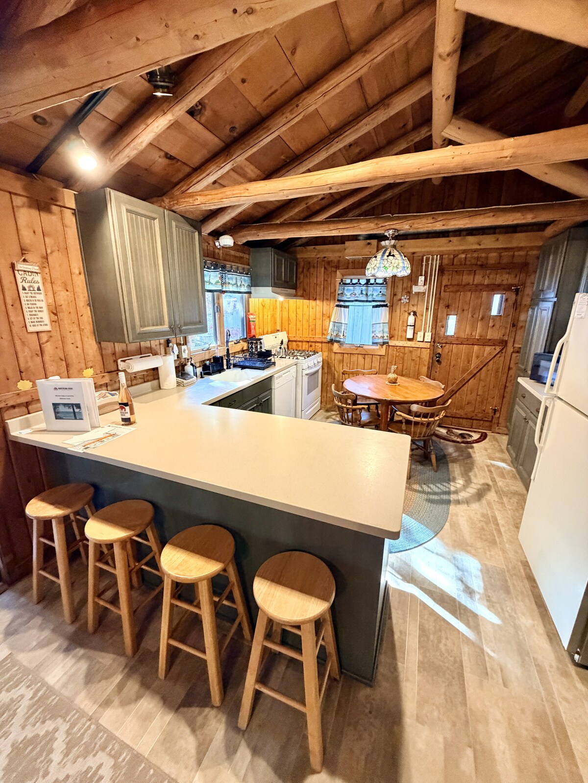 Finn deg til rette på Lofted Pines Cottage for oppholdet ditt i Door County! Lofted Pines ligger utenfor allfarvei, men bare noen få minutter fra sentrum av Sister Bay eller Lake Michigan, og er elegant plassert blant modne sedertre og grantrær, men likevel åpent og luftig. Enten du slapper av på verandaen, koser deg foran peisen eller nyter vedfyringsgrøften, er Lofted Pines det perfekte stedet å slappe av etter å ha utforsket Door County-halvøya.
