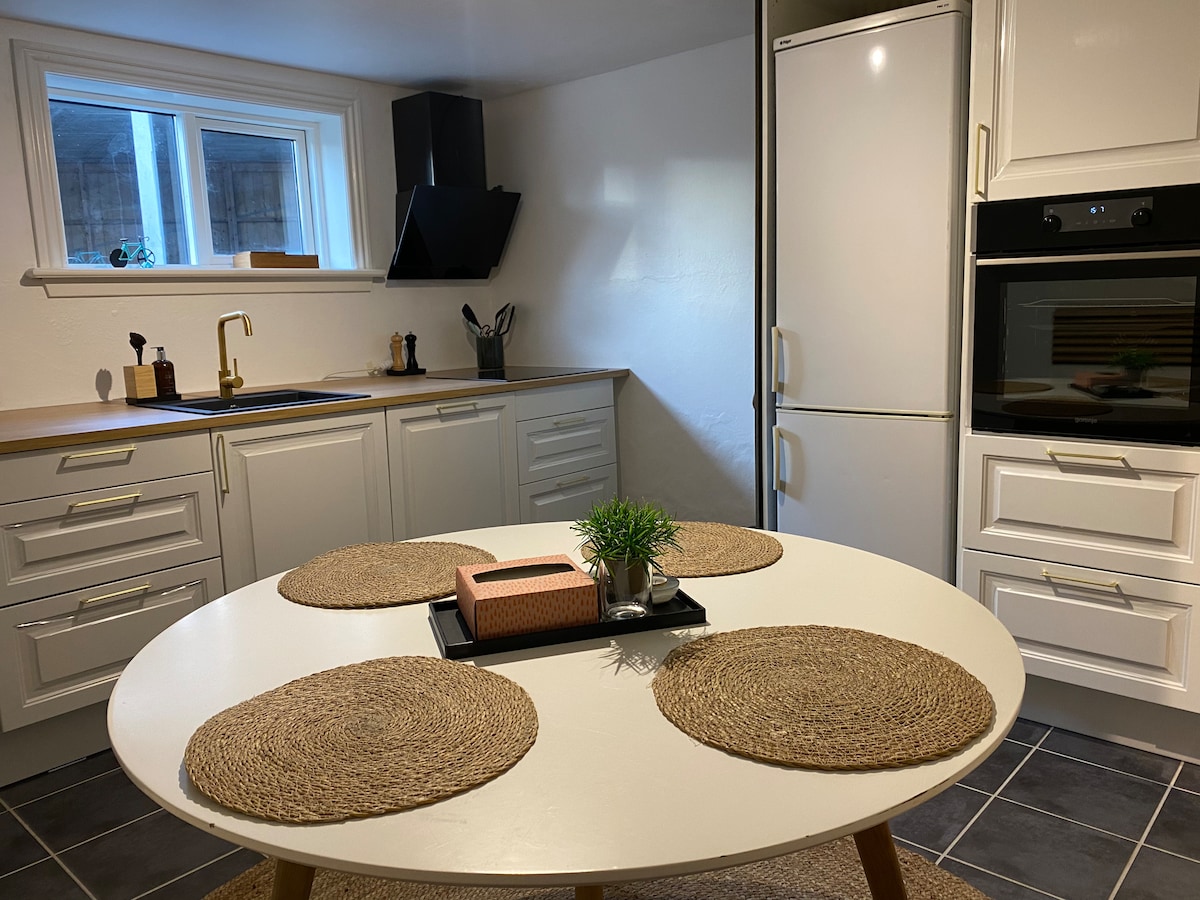 I får jeres egen private indgang til en lys og rummelig kælderlejlighed på ca. 85 m² med stue, soveværelse, køkken og badeværelse. Ingen fællesrum med ejer – I har hele lejligheden for jer selv. Kun ca. 9 km til motorvej E39 10 minutters kørsel til Vesterhavet (Tversted) 15 minutters kørsel til Hjørring, Frederikshavn og Hirtshals Byen har to større supermarkeder og en af landsdelens bedste bagere. Sengelinned, håndklæder og alt andet er inkluderet i prisen, som betales via Airbnb.