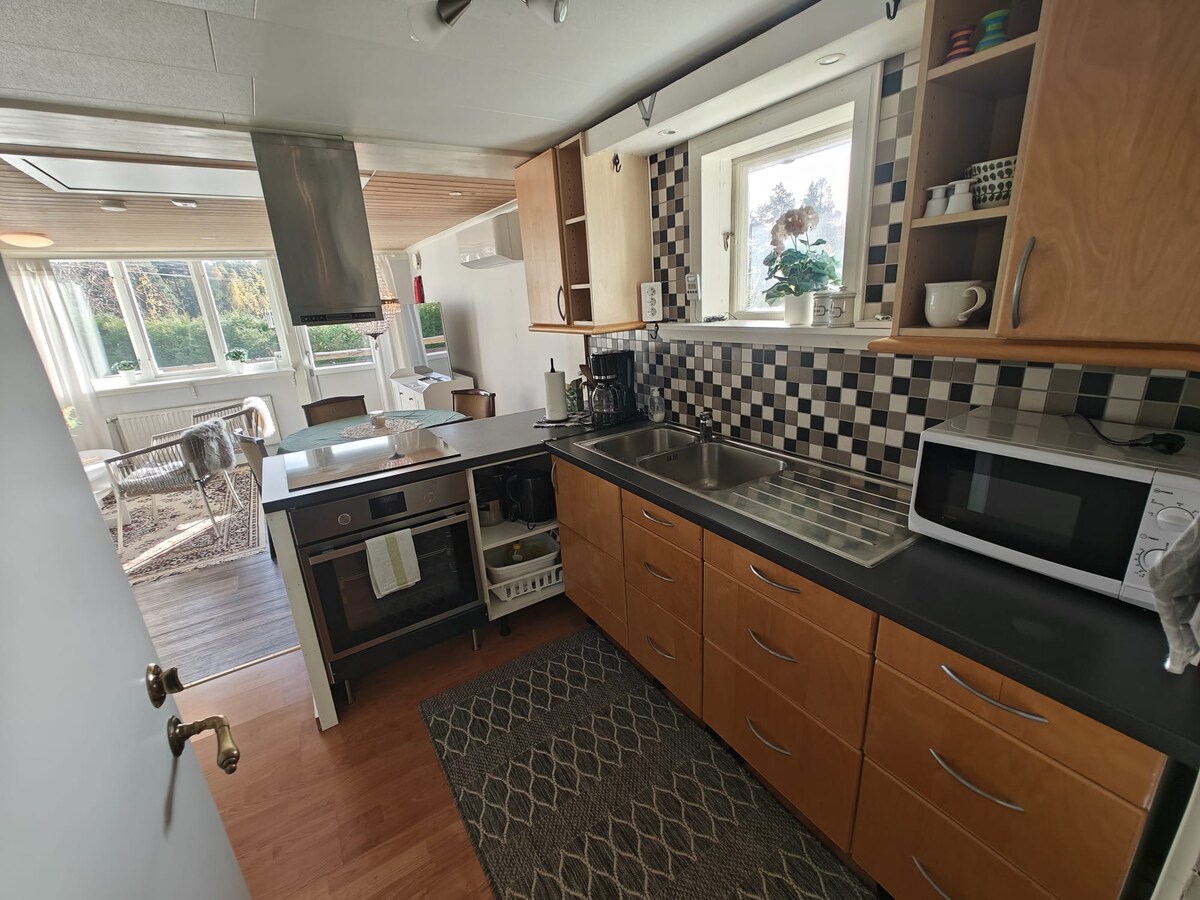 Denne sjarmerende hytta har tidligere blitt leid ut med gode anmeldelser – vi er nå nye eiere og ser frem til å ønske både nye og tilbakevendende gjester velkommen. Hytta ligger sentralt plassert med fire minutters gange til IKEA og Bergvik kjøpesenter med flere butikker. Du har din egen avsidesliggende hage med 25 kvm stor terrasse med sol det meste av dagen. Terrassen ligger avsides med tujahäck og en trellisvegg. Fra terrassen har du et lite glimt av Vänern-sjøen når du ser over hekken.